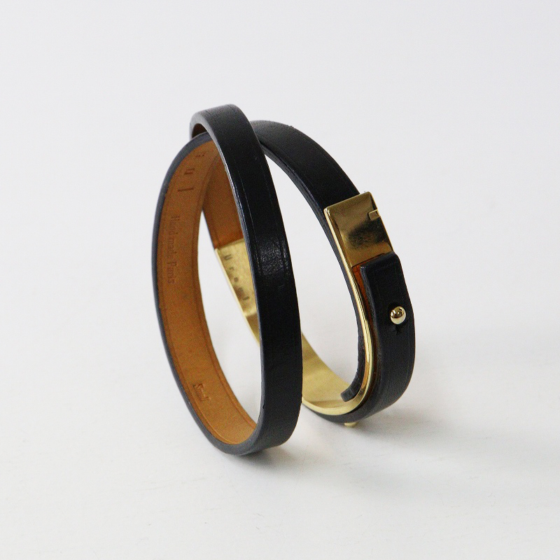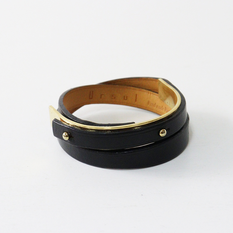 ユアソル Ursul レザー ブレスレット S/ブラック ゴールド バングル 本革【2400014546743】