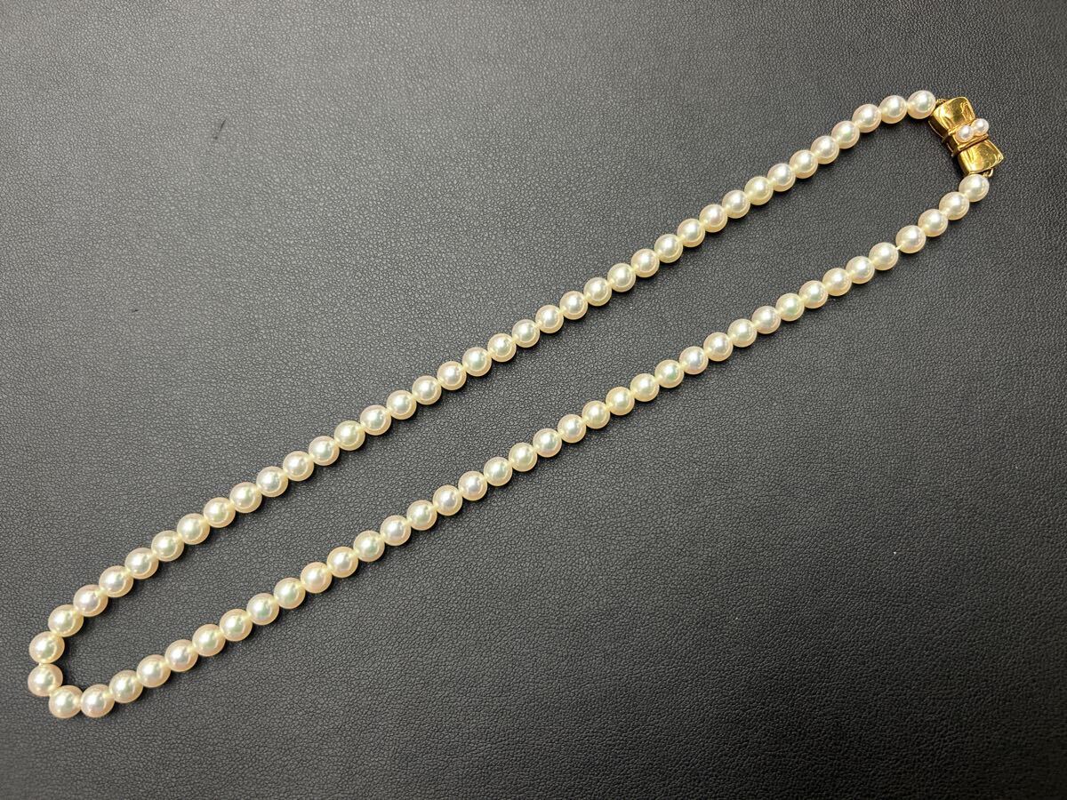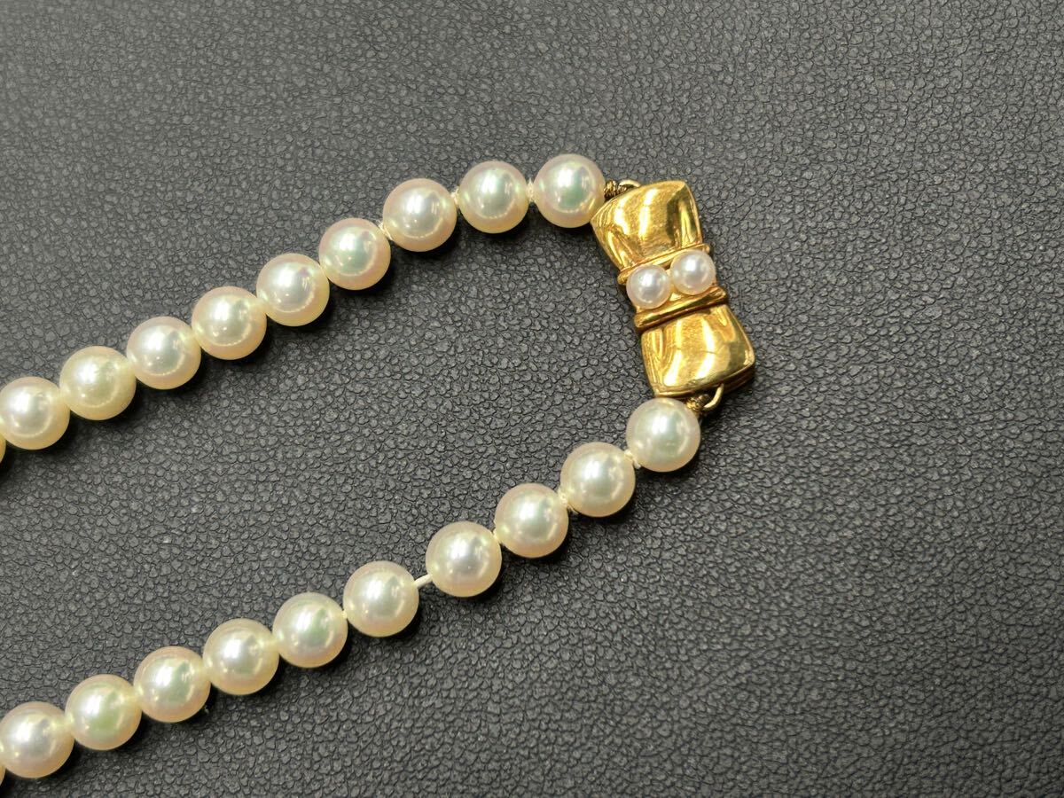 ★MIKIMOTO ミキモト パール ネックレス 留具K18刻印 約18.5g 珠約5-5.5mm 真珠 パール アクセサリー ゴールド 金★リボン★