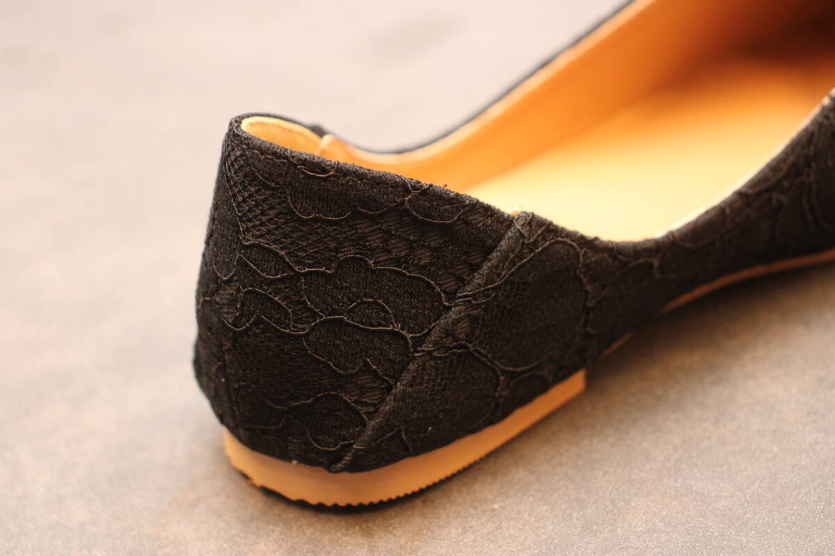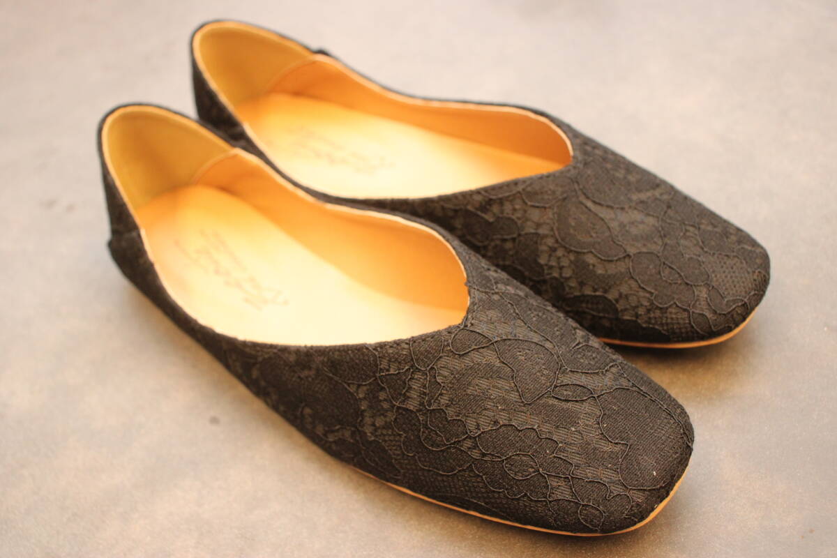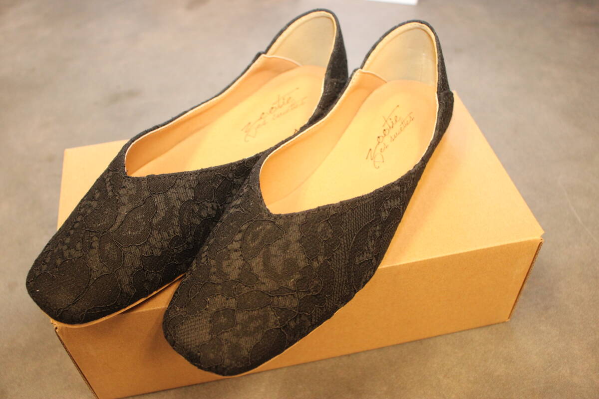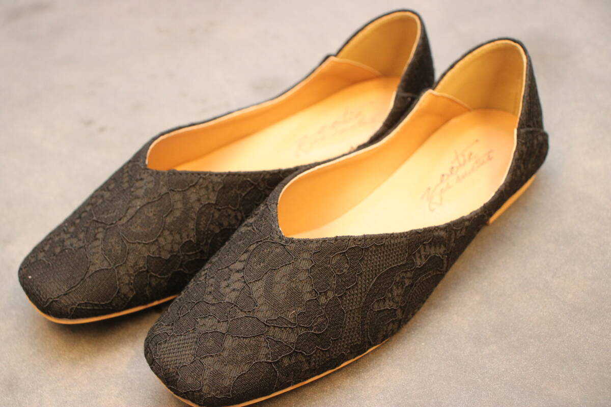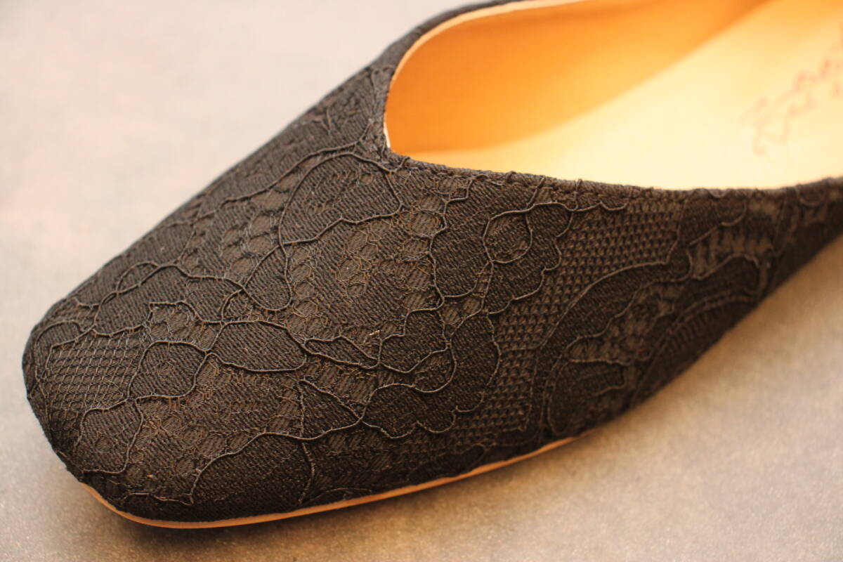 新品 スクエアトゥ Vカットバブーシュ レースブラック Mサイズ 133