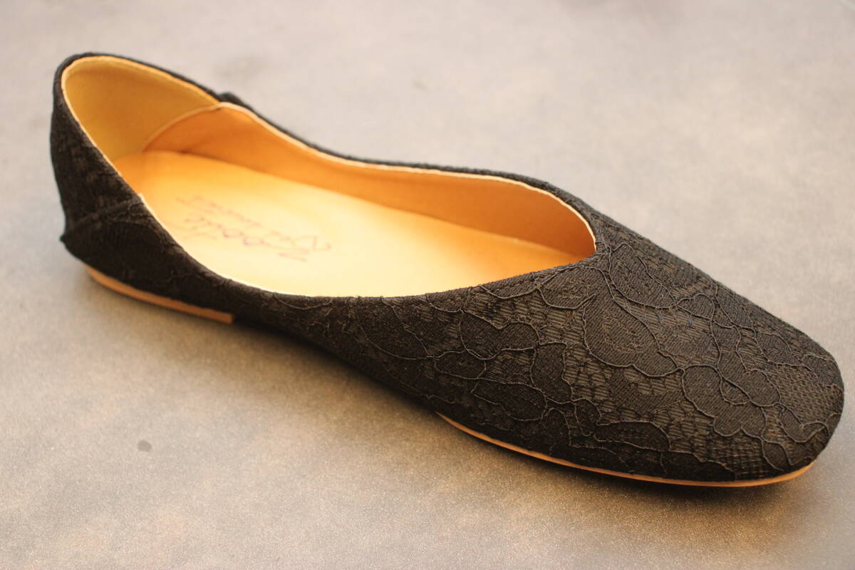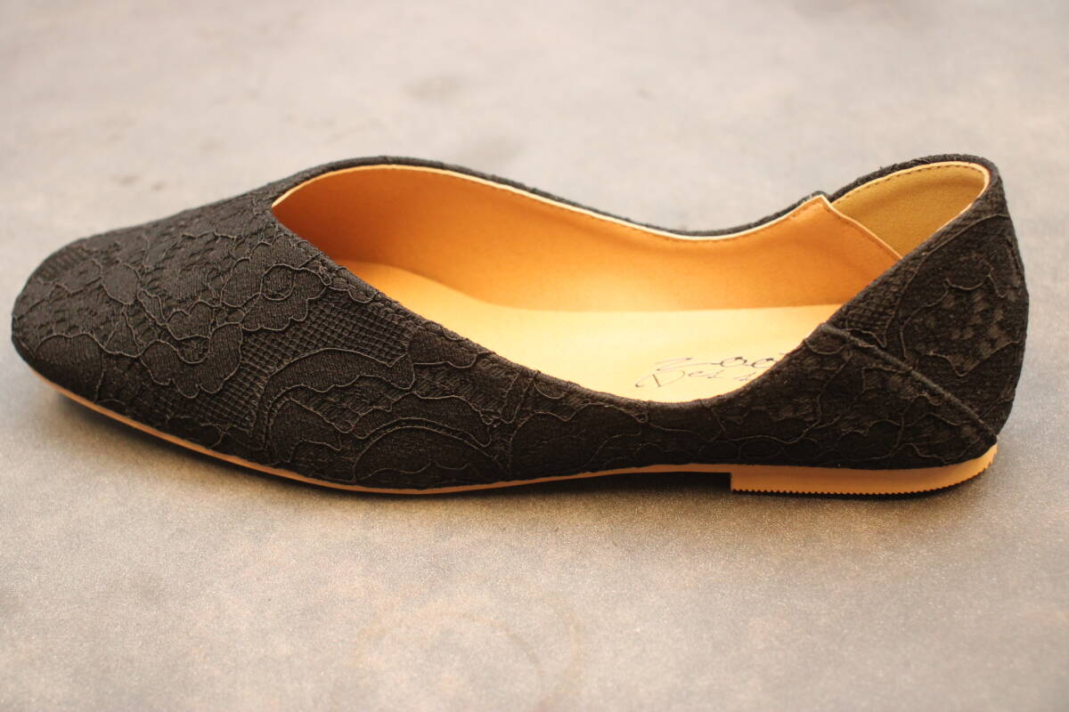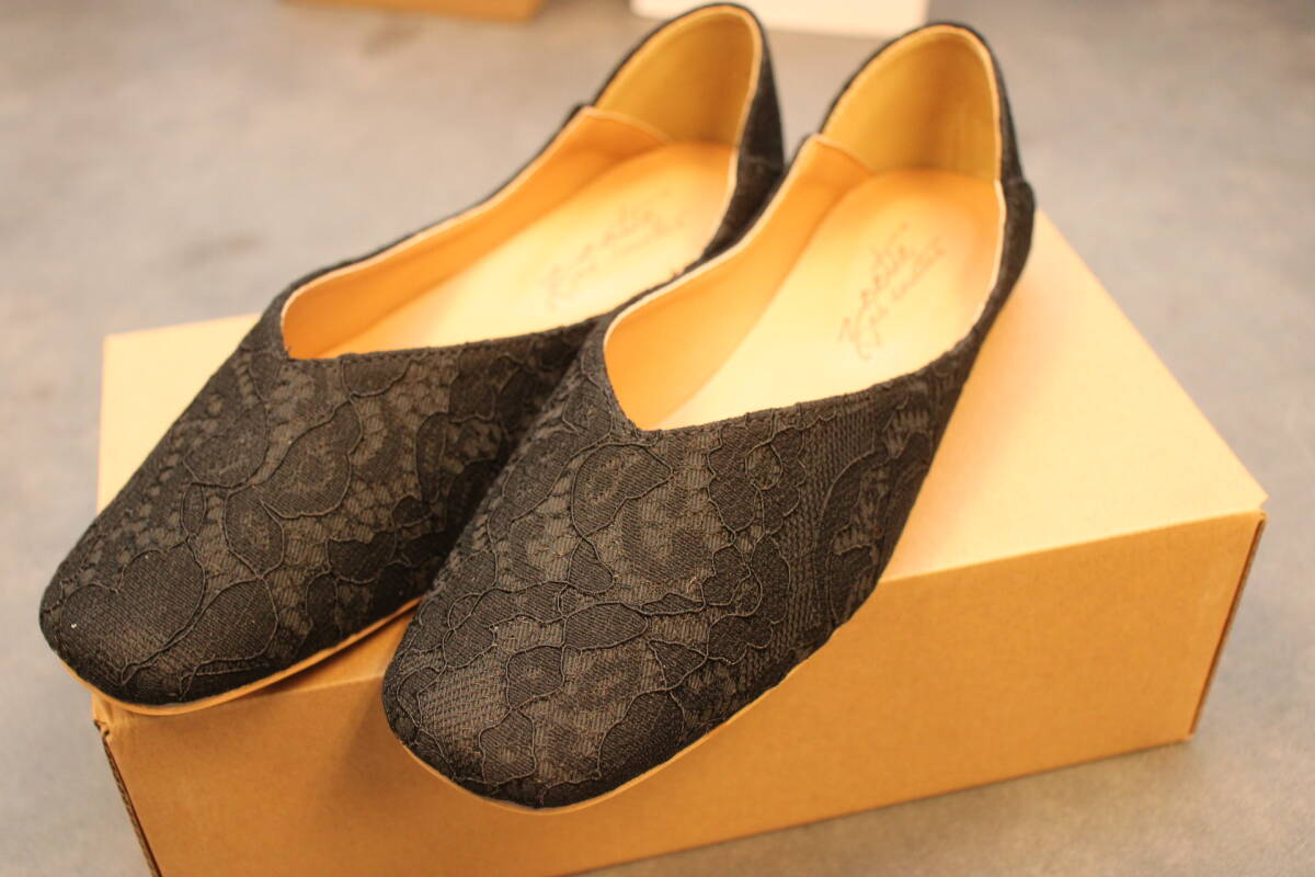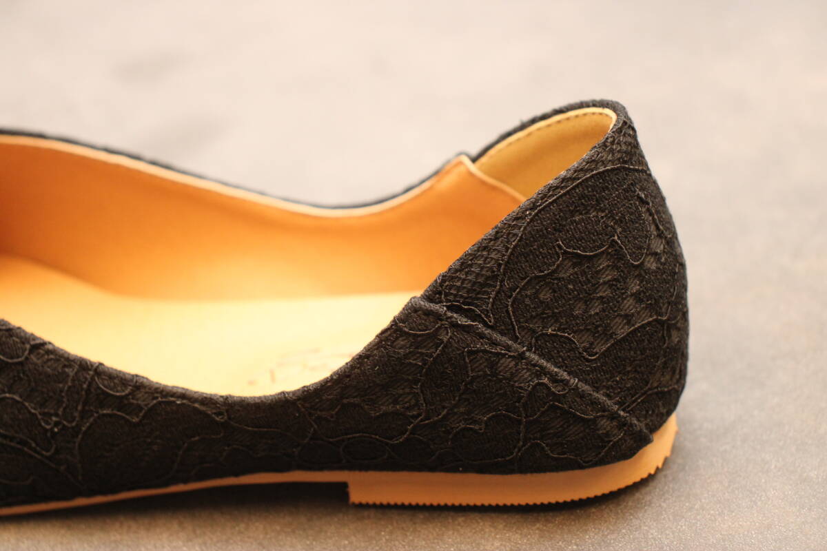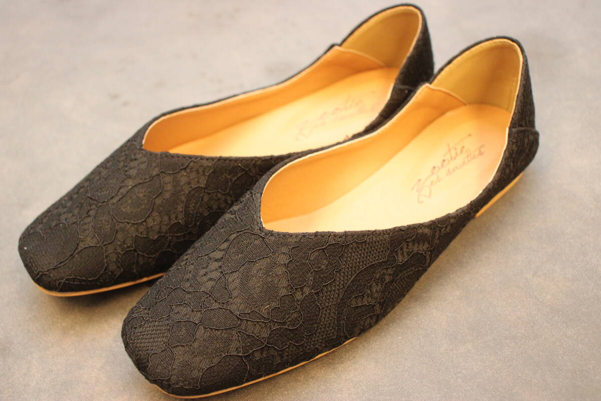新品 スクエアトゥ Vカットバブーシュ レースブラック Mサイズ 133