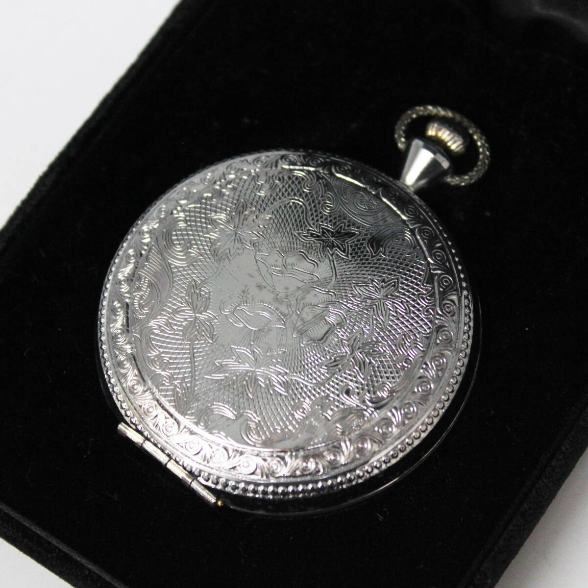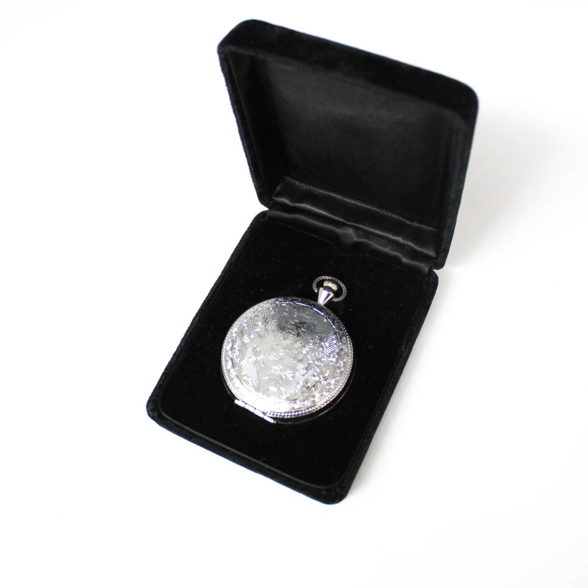 懐中時計型オルゴール シルバー 稼働品 ミラー付き