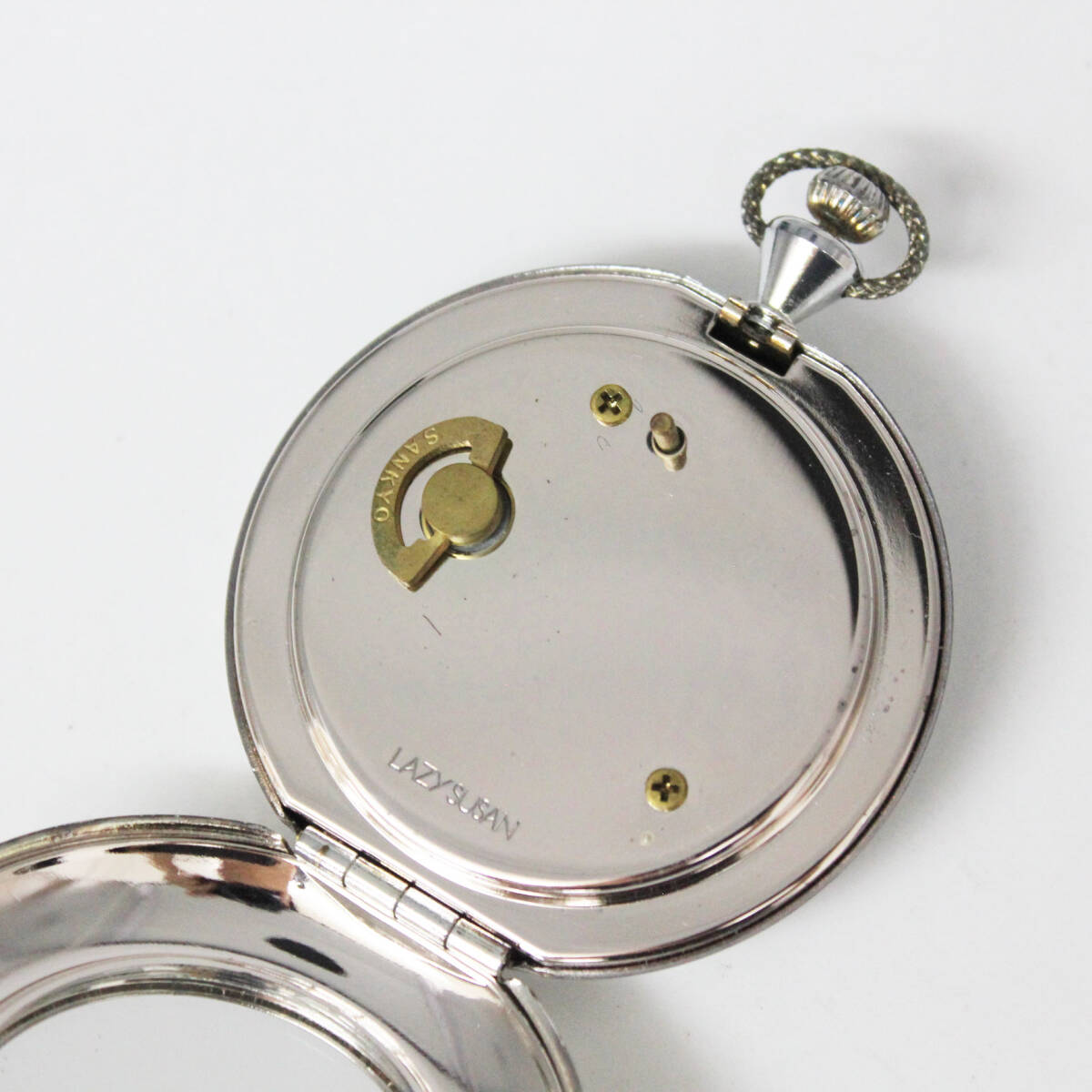W251006-32 【ケース付き】LAZYSUSAN レイジースーザン 懐中時計型オルゴール シルバー 稼働品 ミラー付き