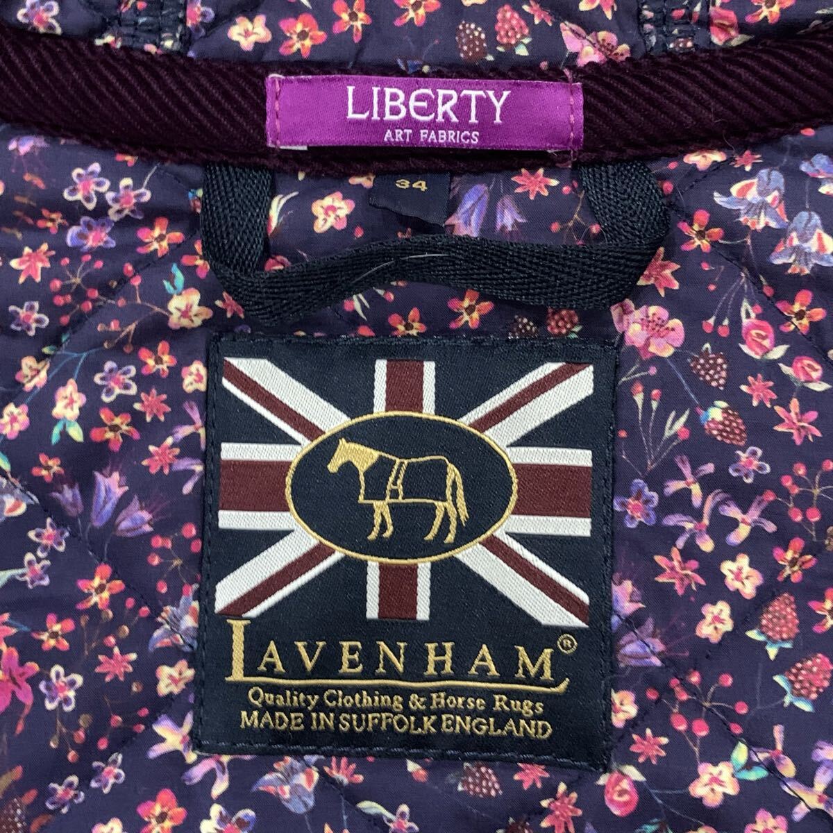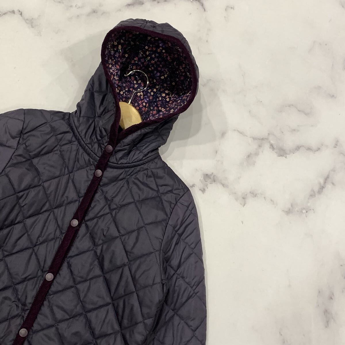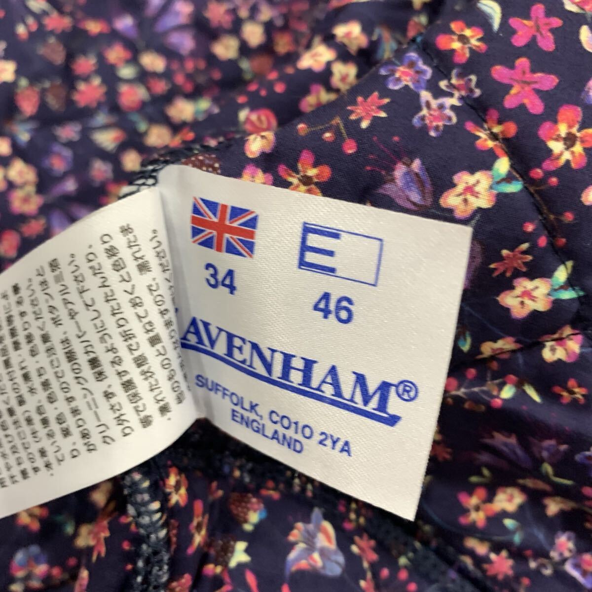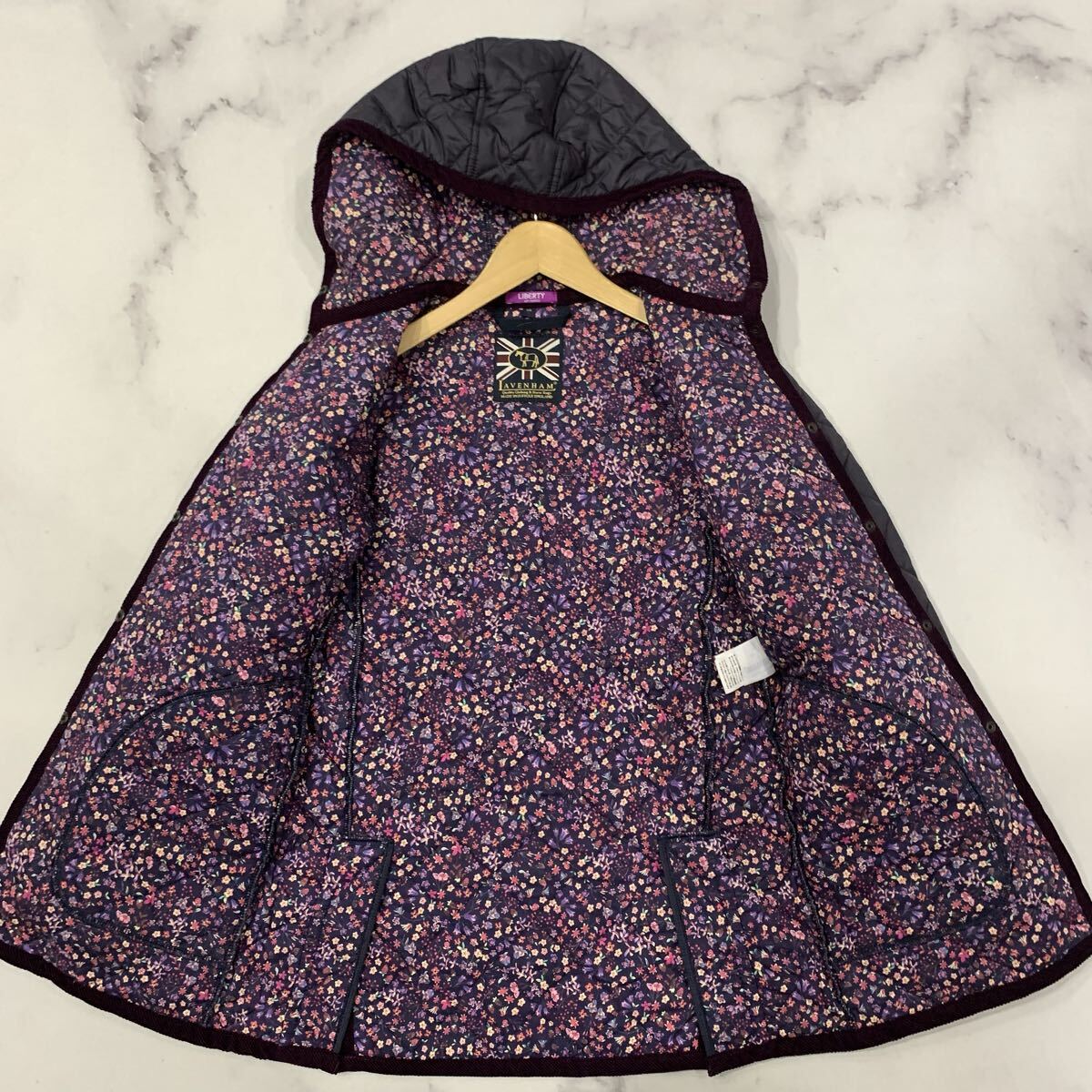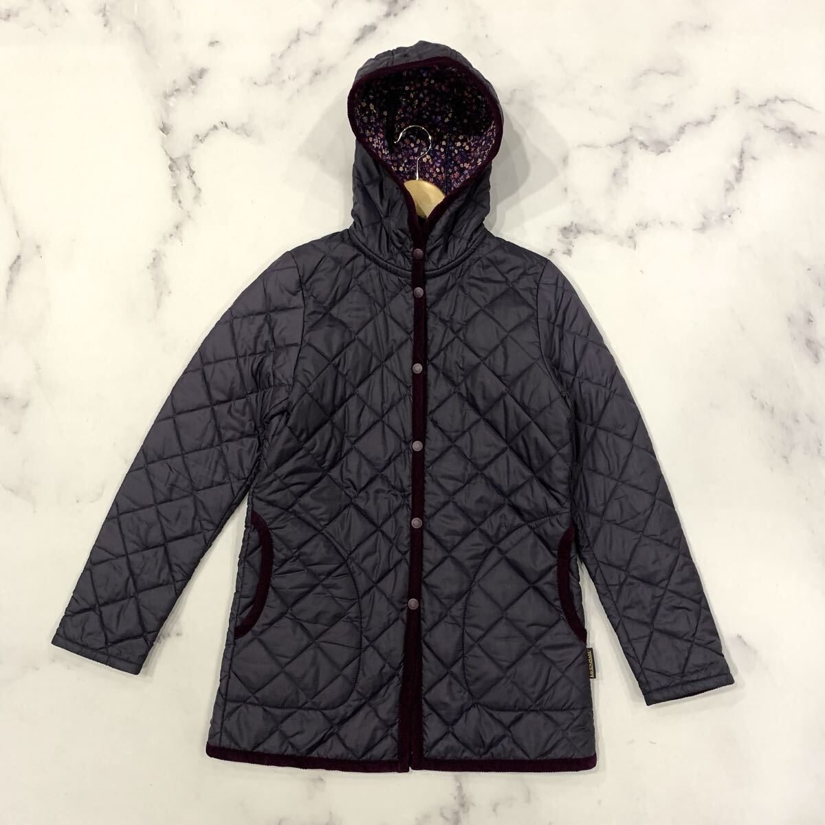A2 ▼ 英国製 LAVENHAM ラベンハム 花柄 中綿 フーデット キルティングジャケット パーカ 46 レディース 婦人服 アウター