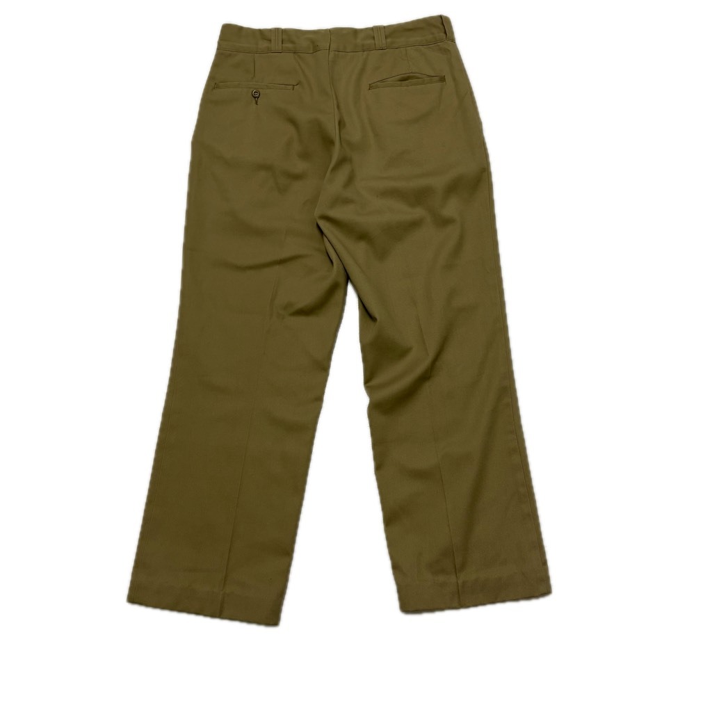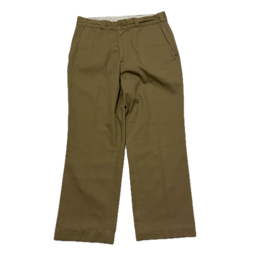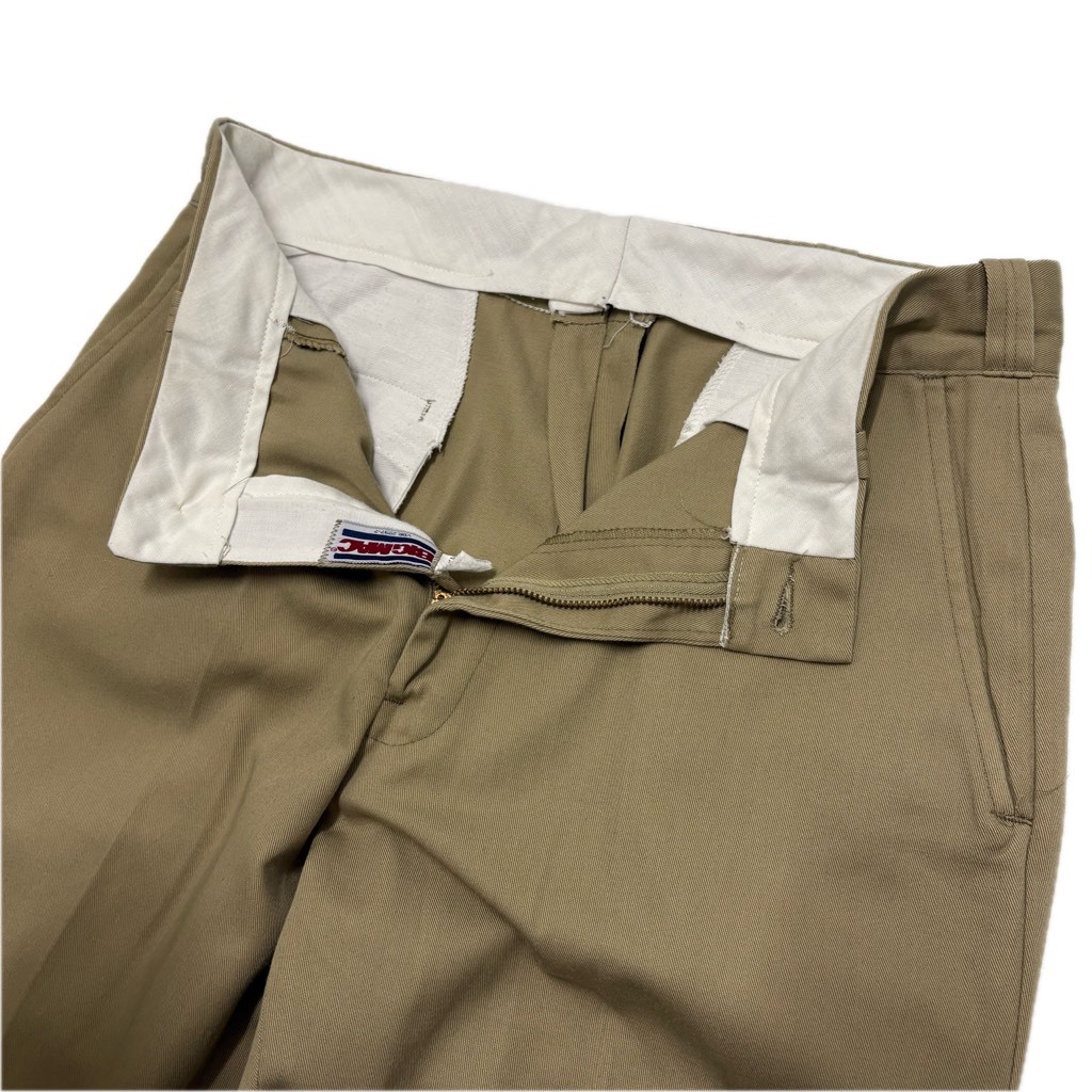 アメリカ古着になります。 80年代のビンテージです。 ウエストはボタン留め、ジッパーはスコービル。 コインポケット付きです。 裾は前オーナーが織り込んで丈詰めをしています。 洗濯済みになります。お探しの方におすすめです。 | |||