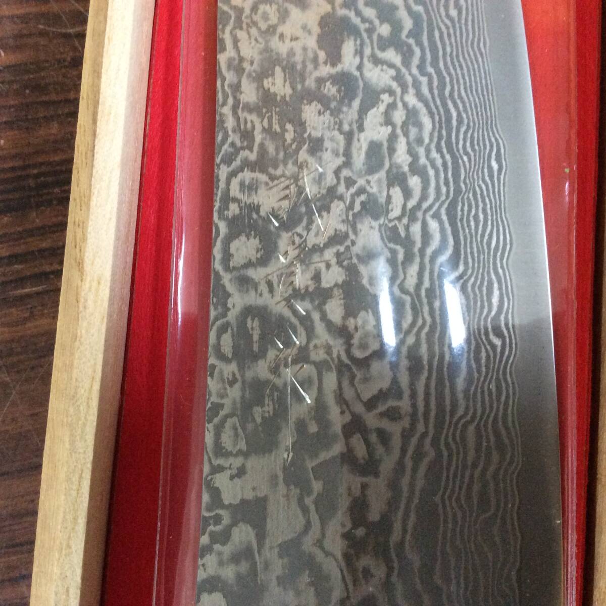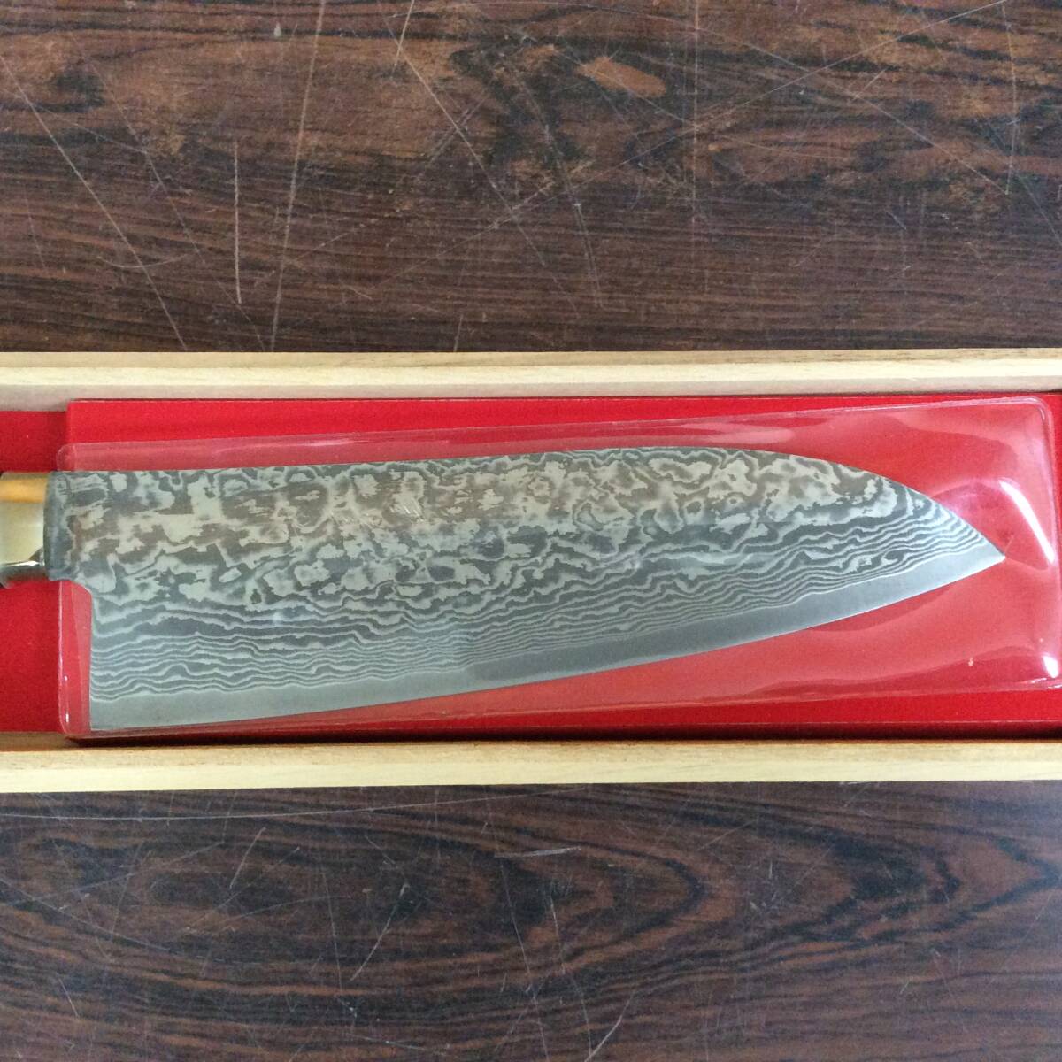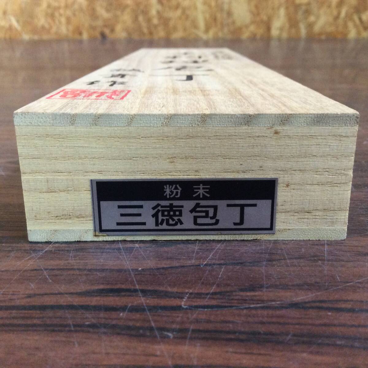 【WH-8041】未使用 田中誠貴作 三徳包丁 両刃 170mm 粉末ハイスR2 木箱入り ダマスカス模様