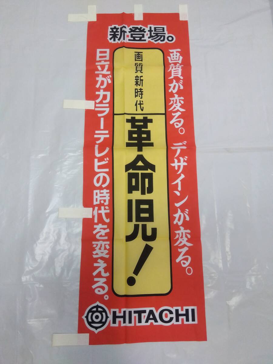 日立カラーテレビの店頭販促用「のぼり旗」と思われます。