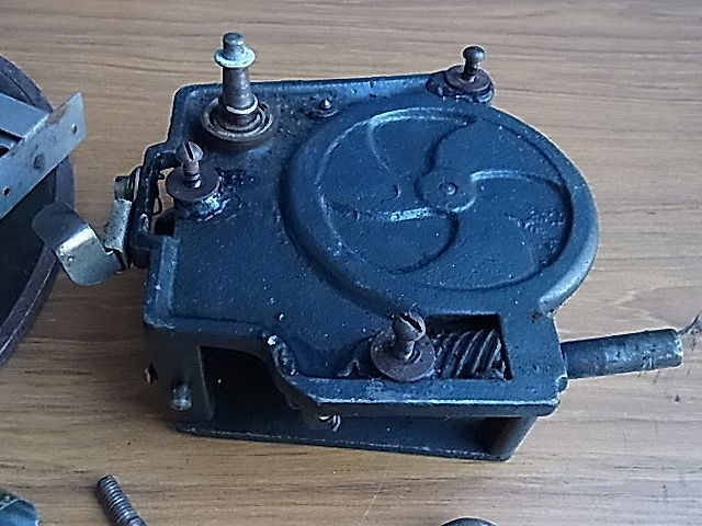 昭和レトロ ポータブル蓄音機 大き目シングルゼンマイ モーター作動 ガバナー良好 部品取り ジャンク品 写真に写ってる分のみです、