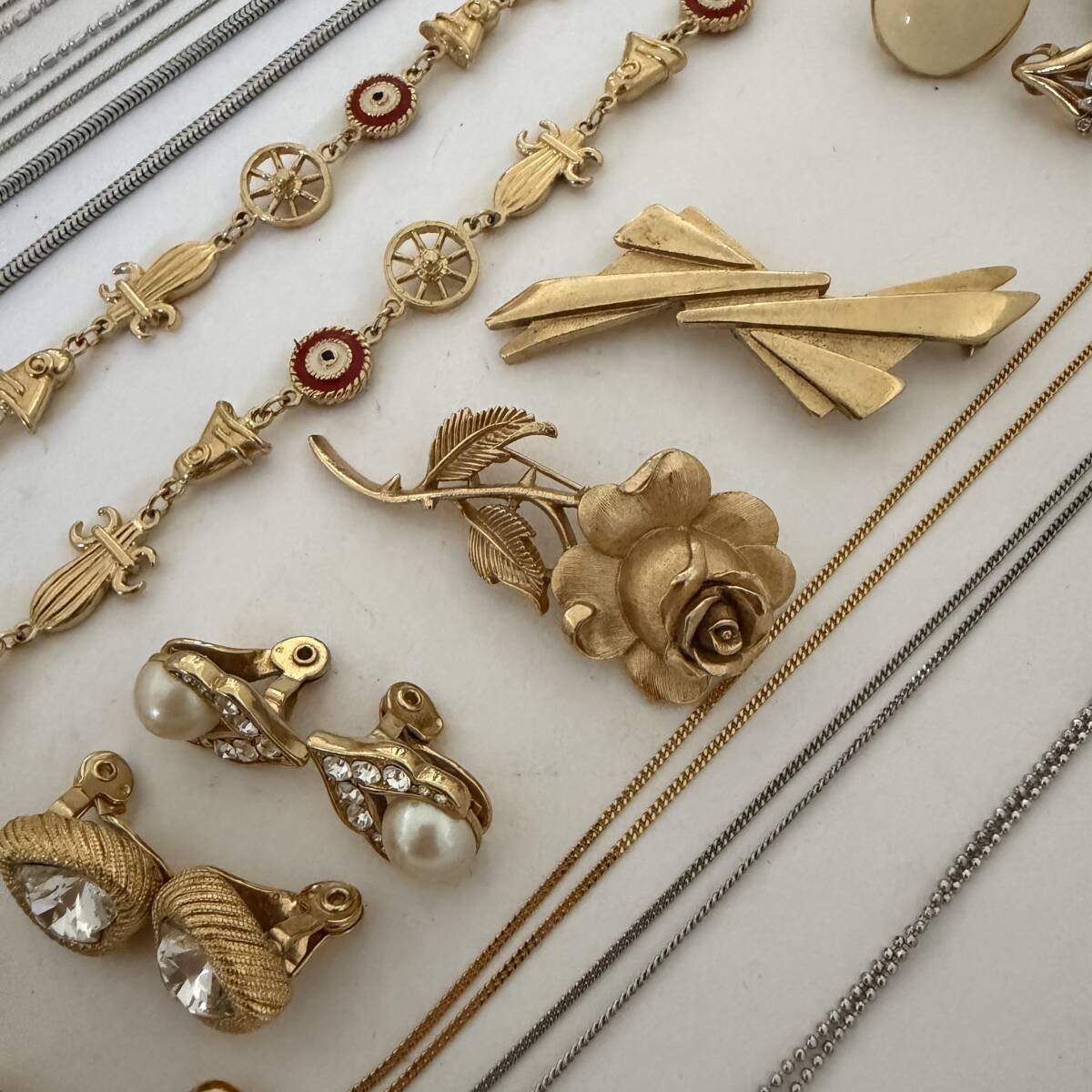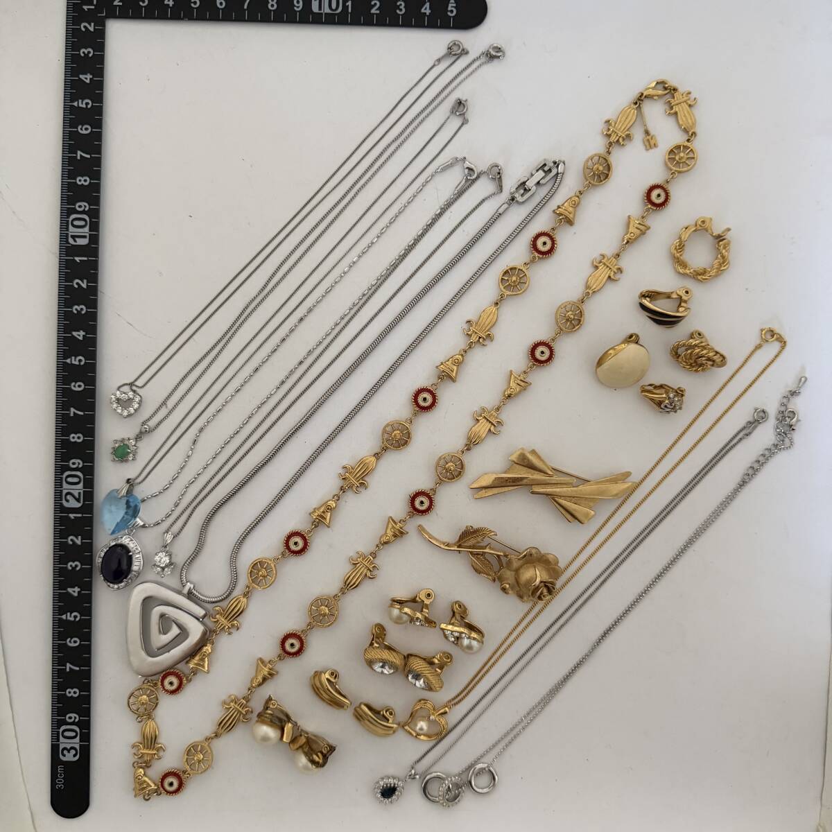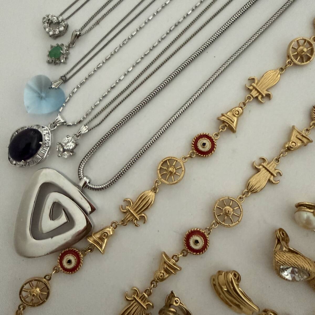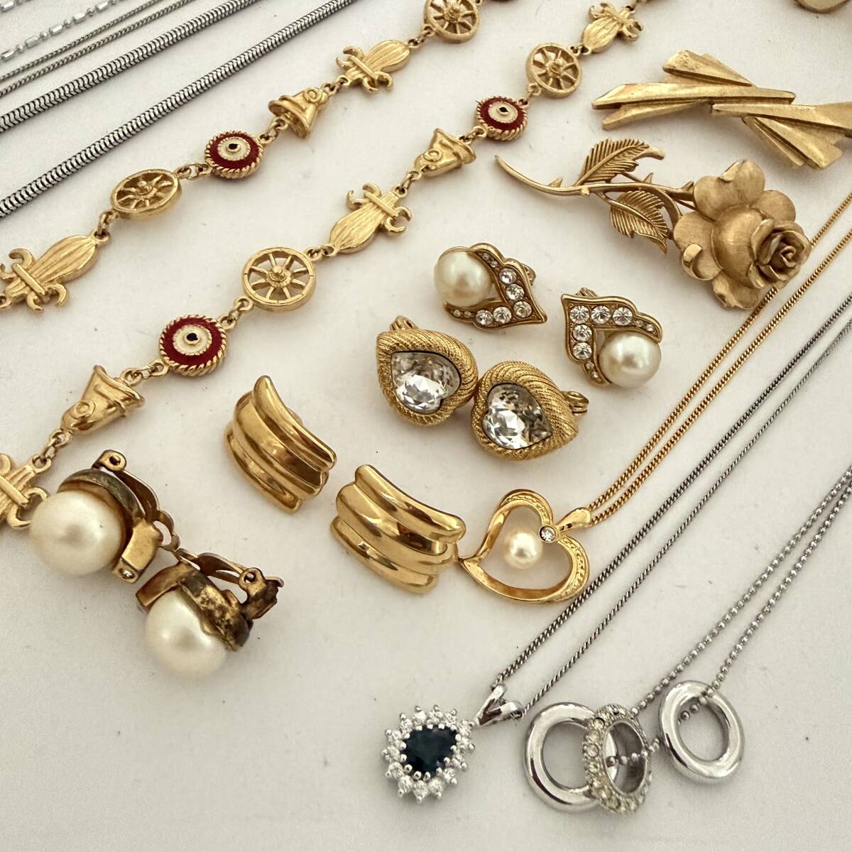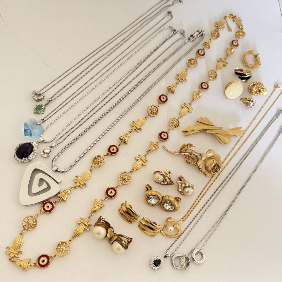 アクセサリーセット 大量 まとめて 色石 ダイヤモンド調 ブランド 倉庫保管品 イヤリング ネックレス ブローチ 片耳 フリマ