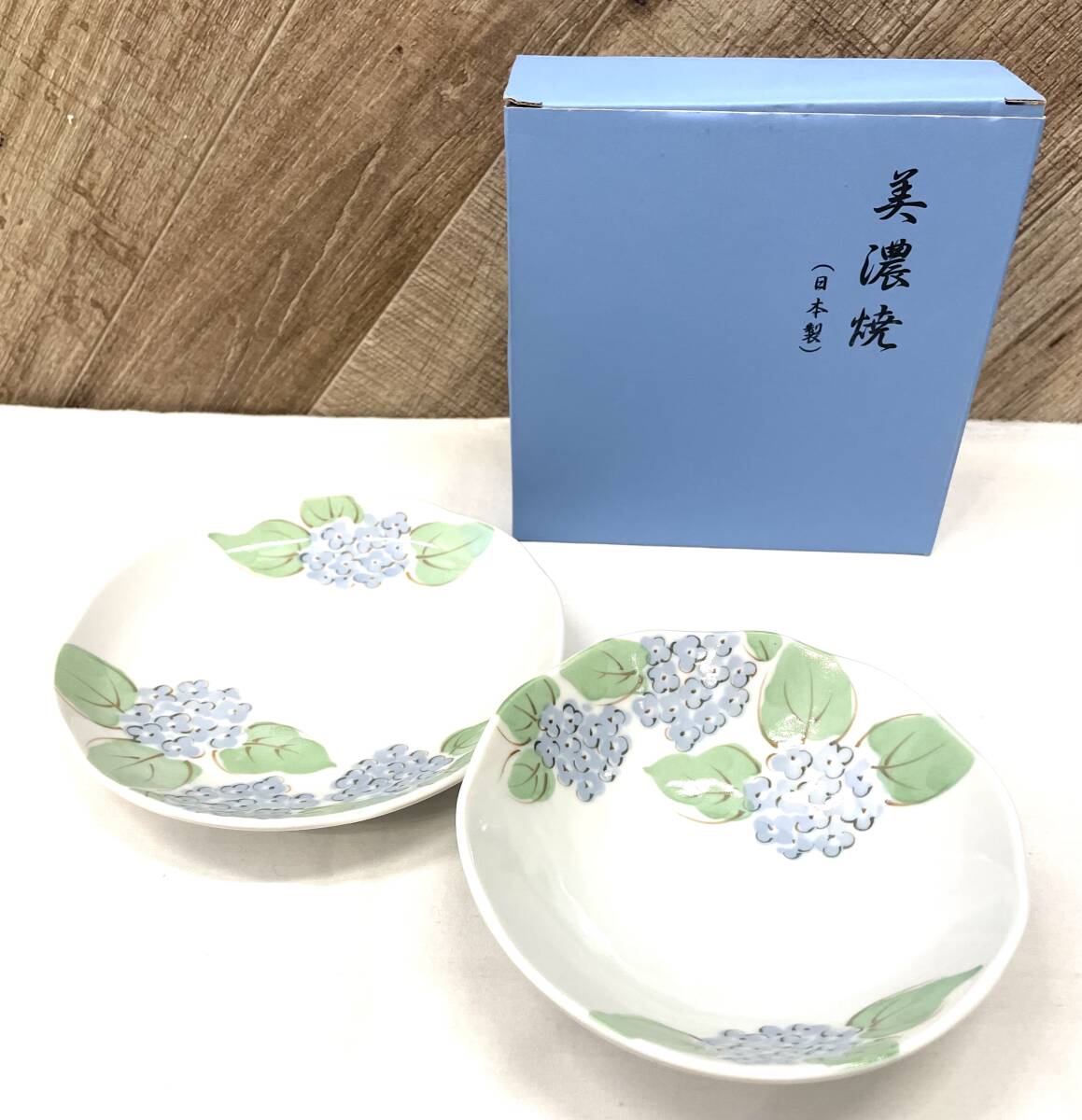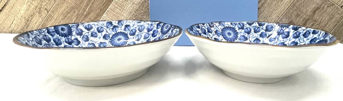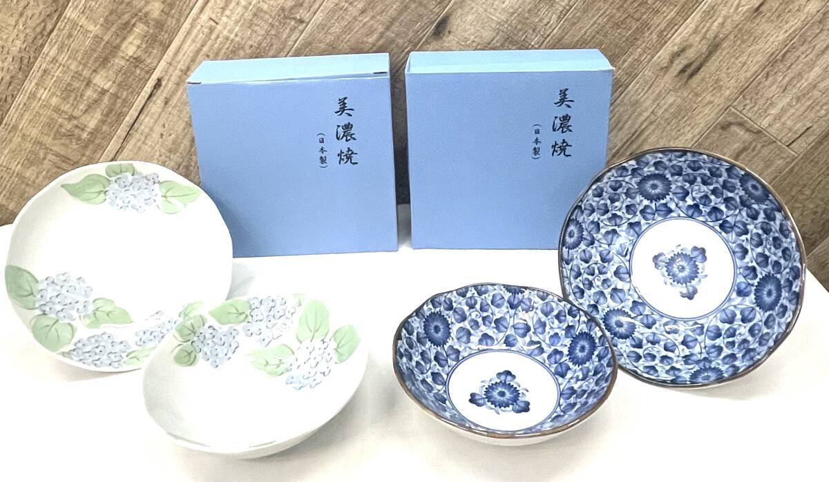 【B】【18498】★☆美濃焼 皿 親子鉢 2種4枚 ろまん 西洞窯 染付花紋 あじさい柄 未使用箱付き 現状品☆★ | ||