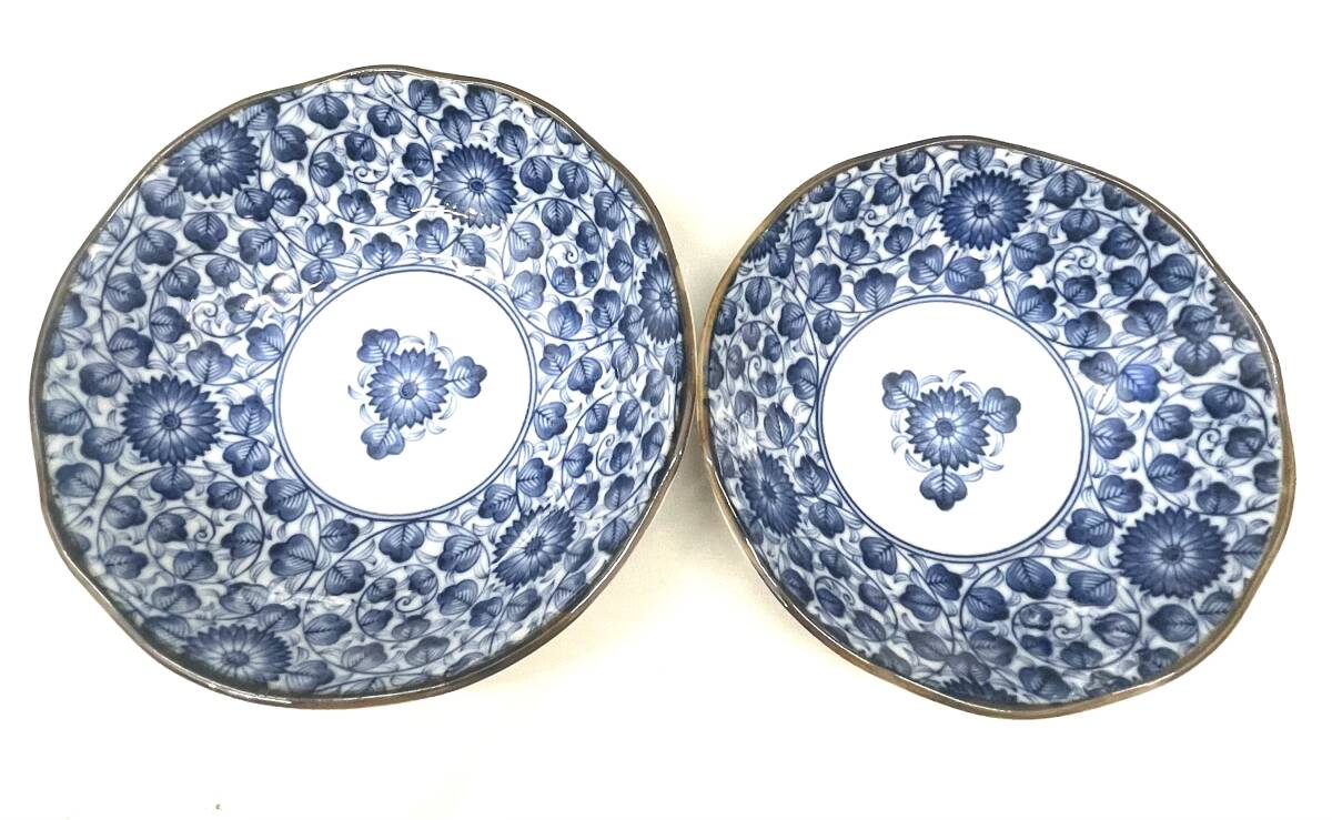 西洞窯 親子鉢 染付花紋 深皿大(直径約16.5㎝/高さ約4.5㎝)深皿小(直径約14.5㎝/高さ約4.5㎝) | ||
