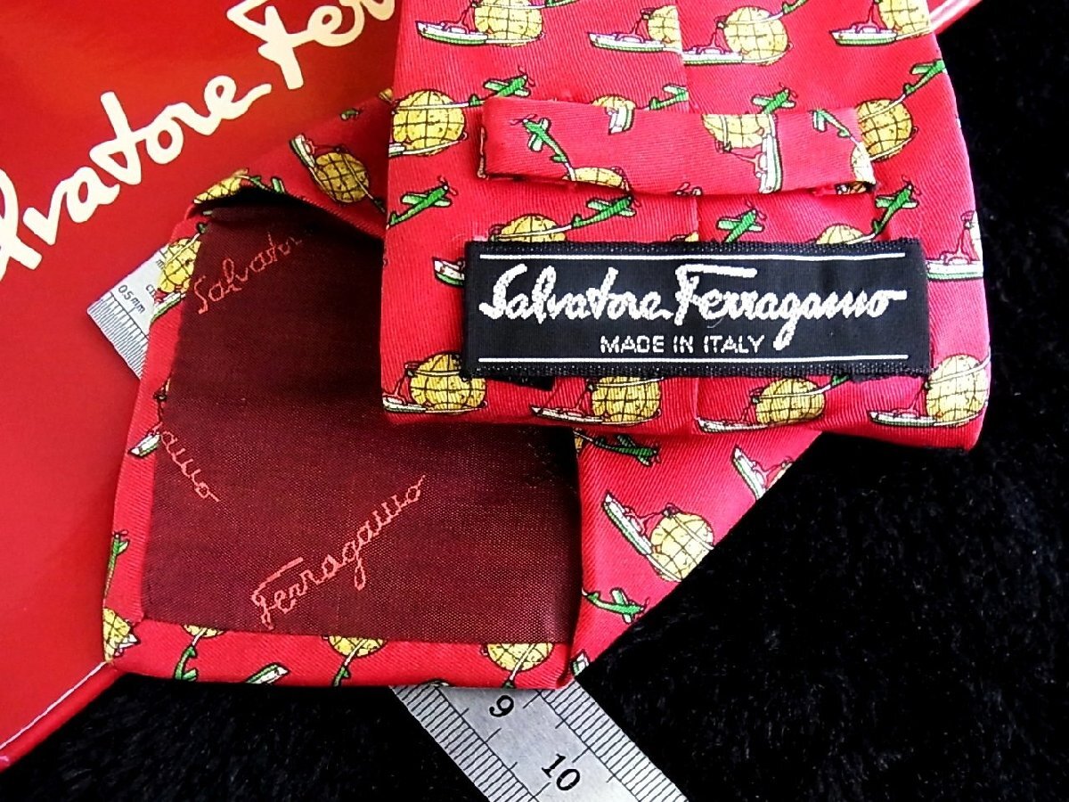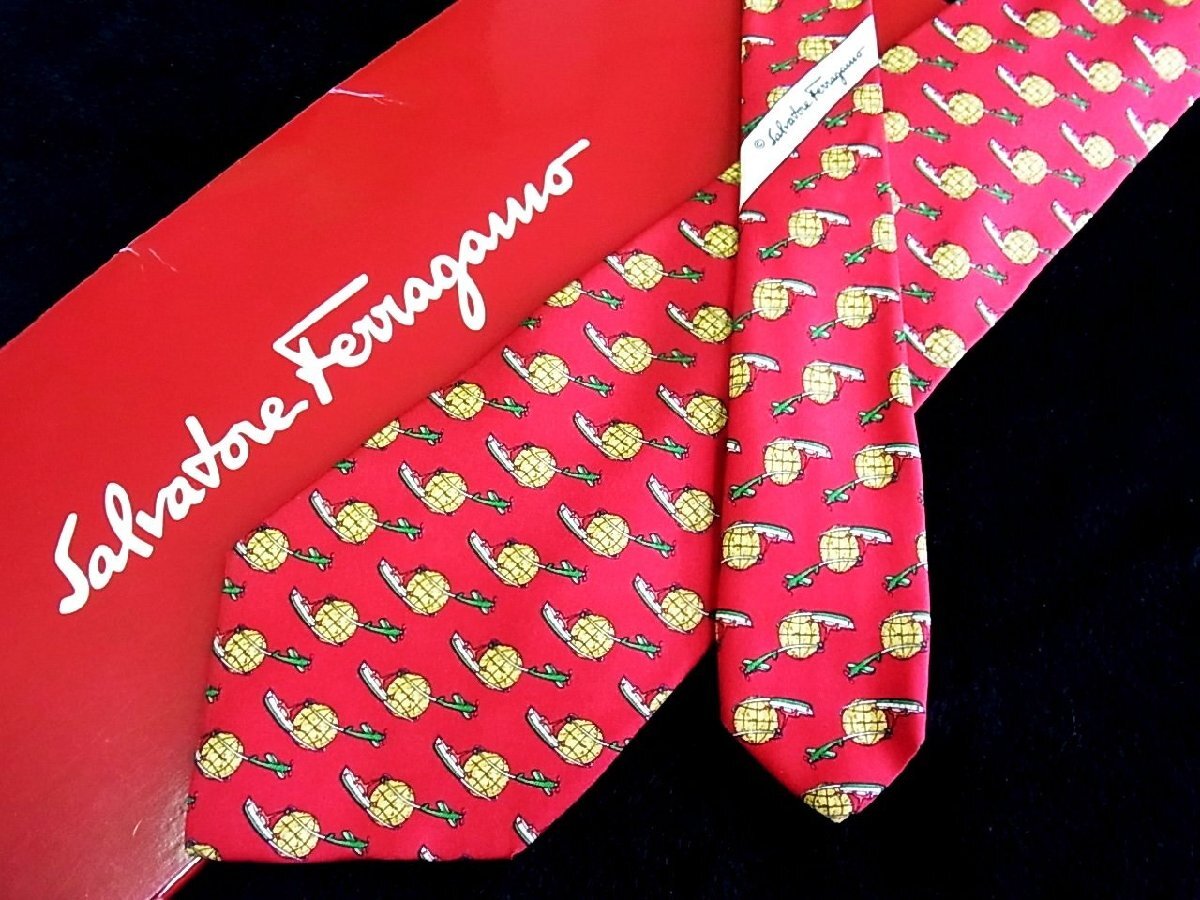 ★今週の特売★6874★高級ブランド【キャラ柄】★フェラガモ【船 飛行機 プロペラ機 乗り物 柄】ネクタイ★