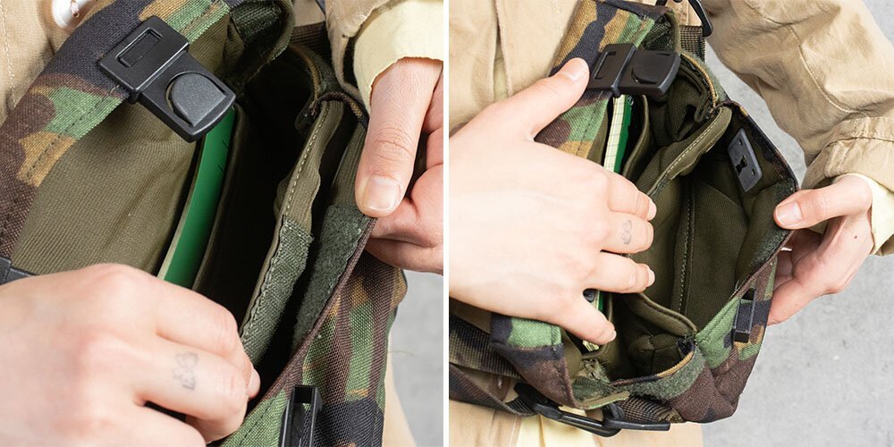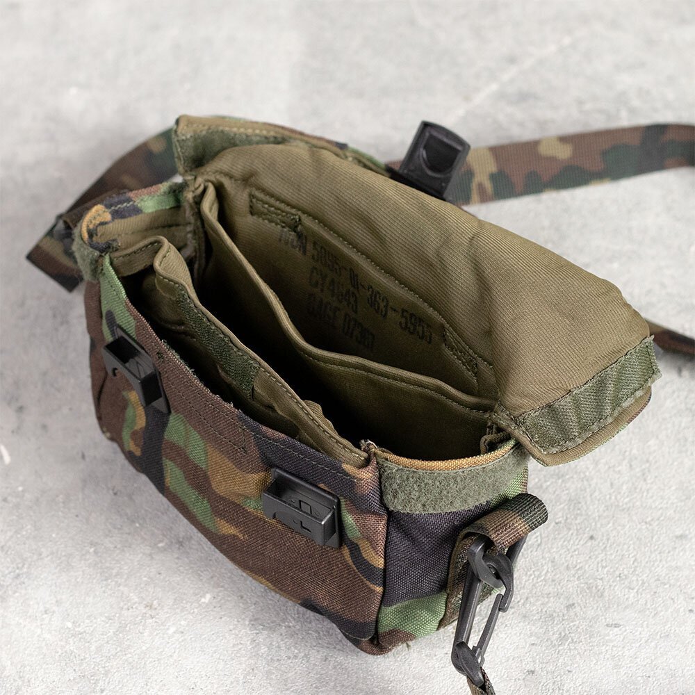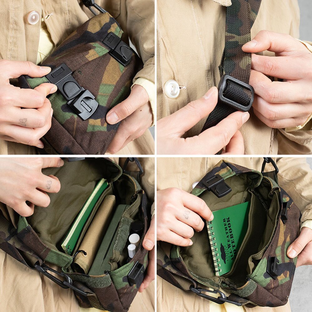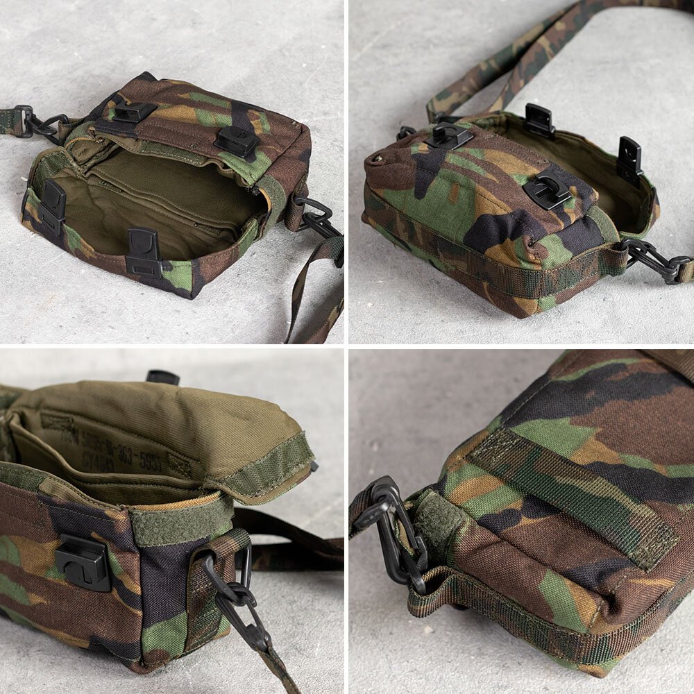 アメリカ軍実物の通信機器を収納するコンパクトなショルダーポーチです。 ショルダーストラップは取り外し可能で、 背面には幅7cm程のベルトを通せるベルトループが付いています。内側には3つの仕切りがあり、マチが8cmと収納力もあり、ちょっとした外出やレジャーに便利なサイズです。内側は柔らかな薄手のクッションが入っており、収納物に傷がつきにくくなっています。ミラーレスなどコンパクトなカメラバックとしてもお使いいただけます。 未使用品ですので8枚目までの写真は流用です。 サイズ H:約10cm x W:約19cm x D:約8cm ショルダーストラップ:105から190cm 素材:ナイロン 沖縄離島を除く全国元払い500円でお送りいたします、落札価格にプラスでお願いいたします。