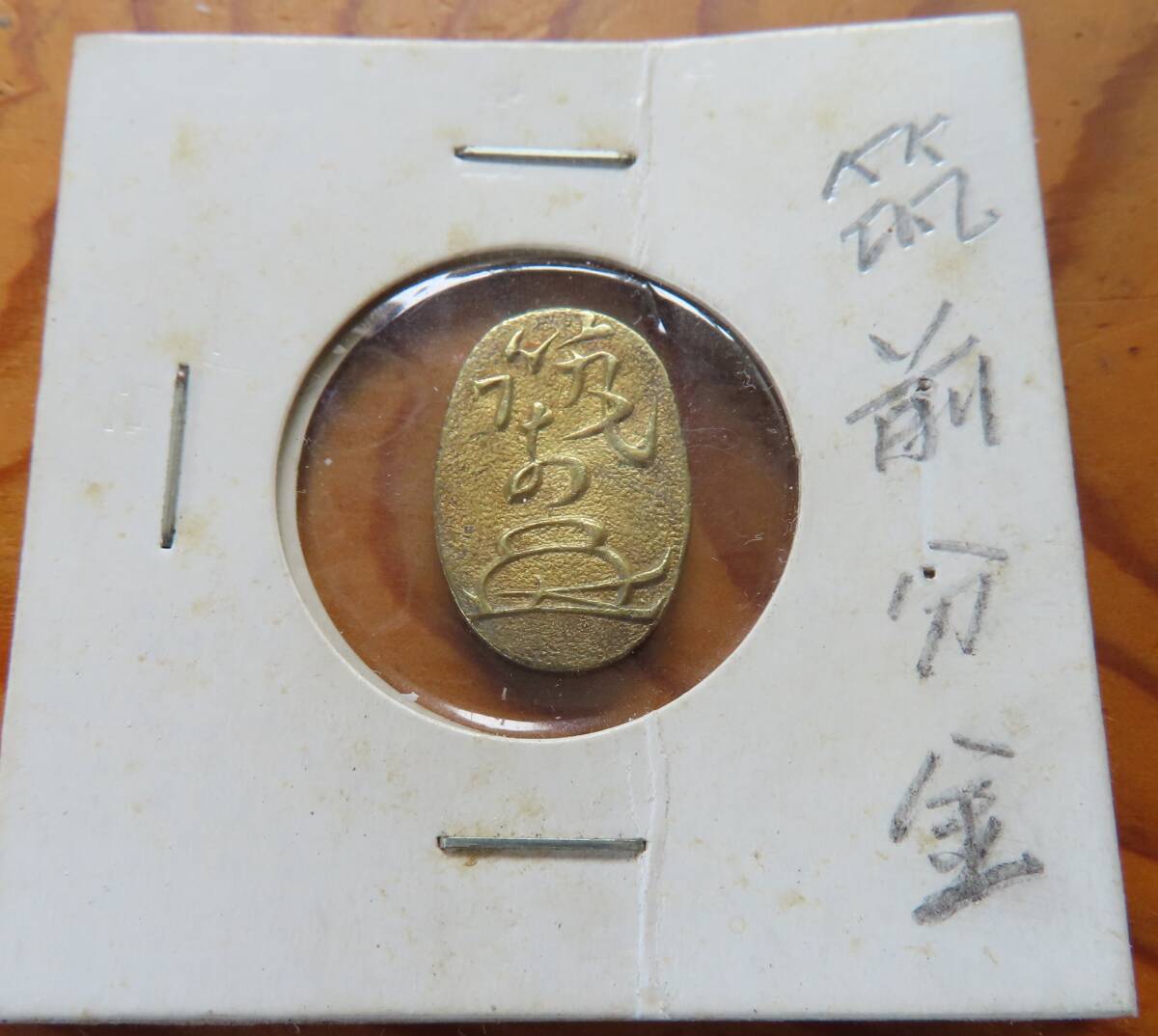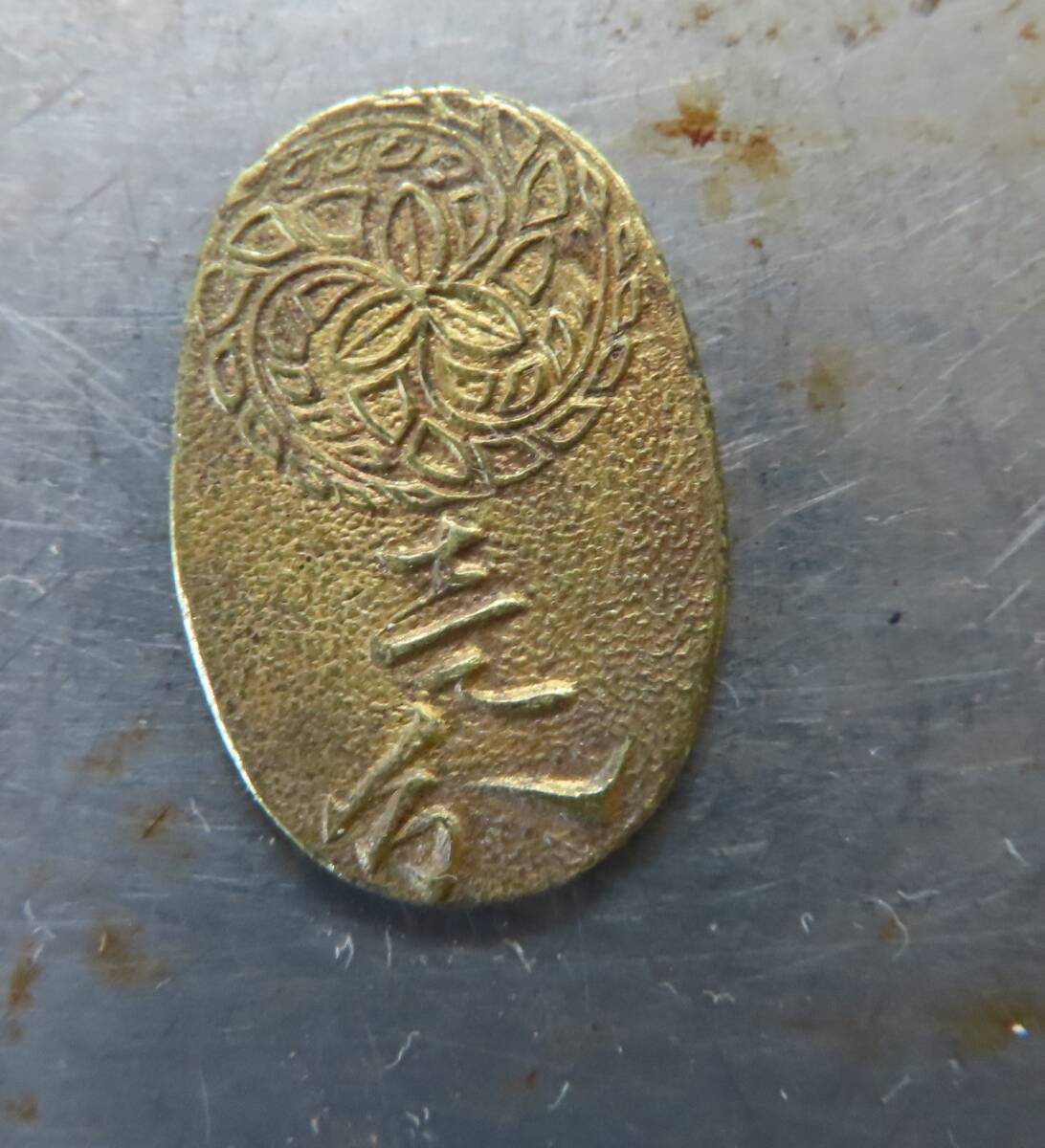 筑前分金 金貨保証 厚さ約1.0㎜、重さ約1.5g 直径約18.9ー12.7mm