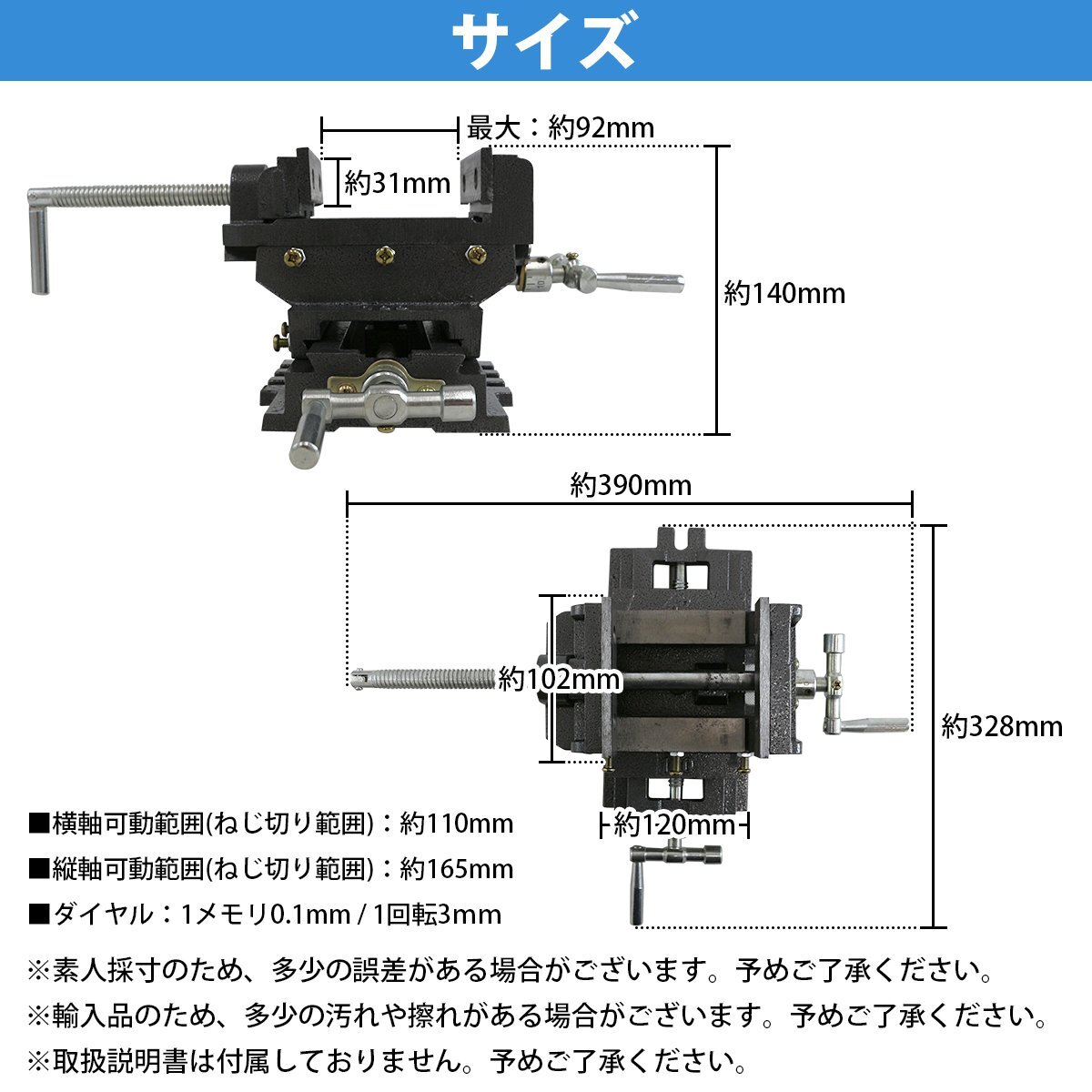 2軸 スライド クロス テーブル バイス 開口 90mm ボール盤 フライス盤 旋盤 卓上 万力 クランプ 固定 作業 金属加工 穴あけ