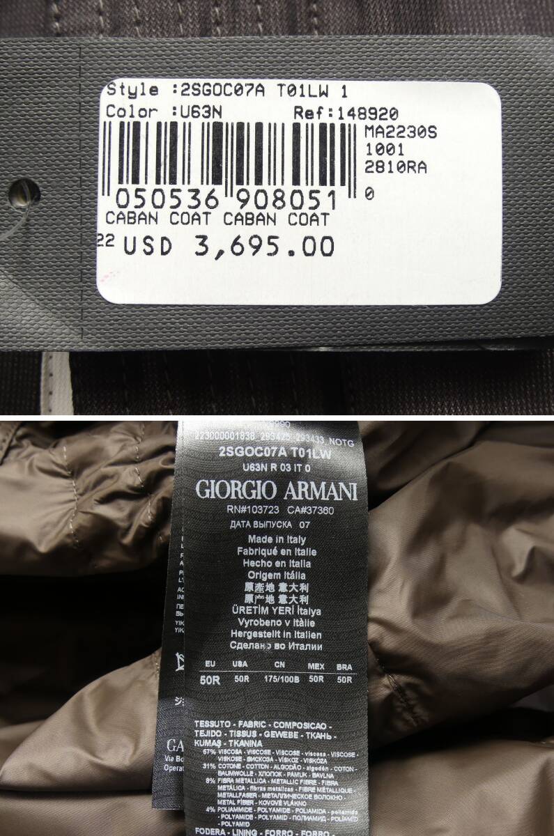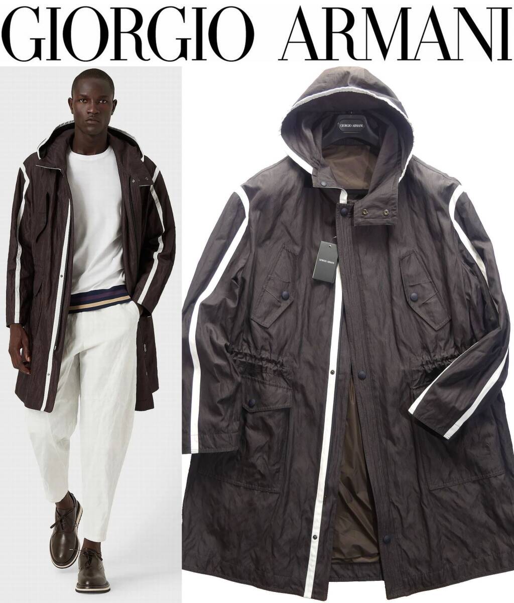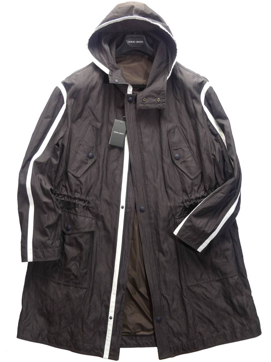 セールSALE秋冬春598,000円新品GIORGIO ARMANIアルマーニ★白テーピングが洒落スタイル。コレクション物フーディーコート【56=日本3~4XL