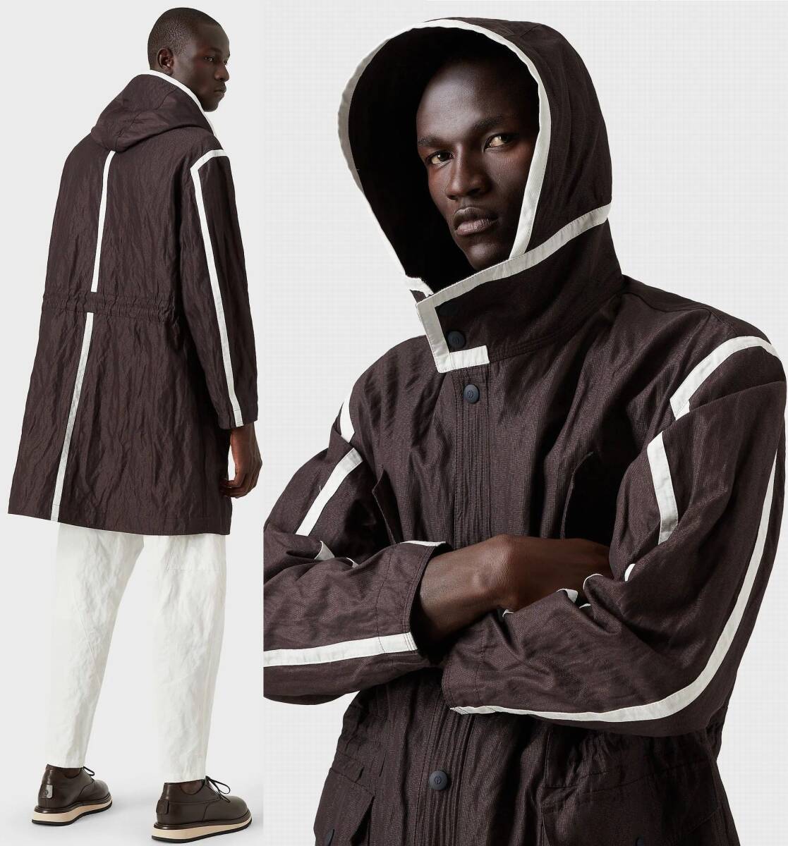 GIORGIO ARMANI/ジョルジオ・アルマーニ 白テーピングが洒落スタイル。貴重コレクション物フーディーコート アルマーニ直営店購入の正規品新品です