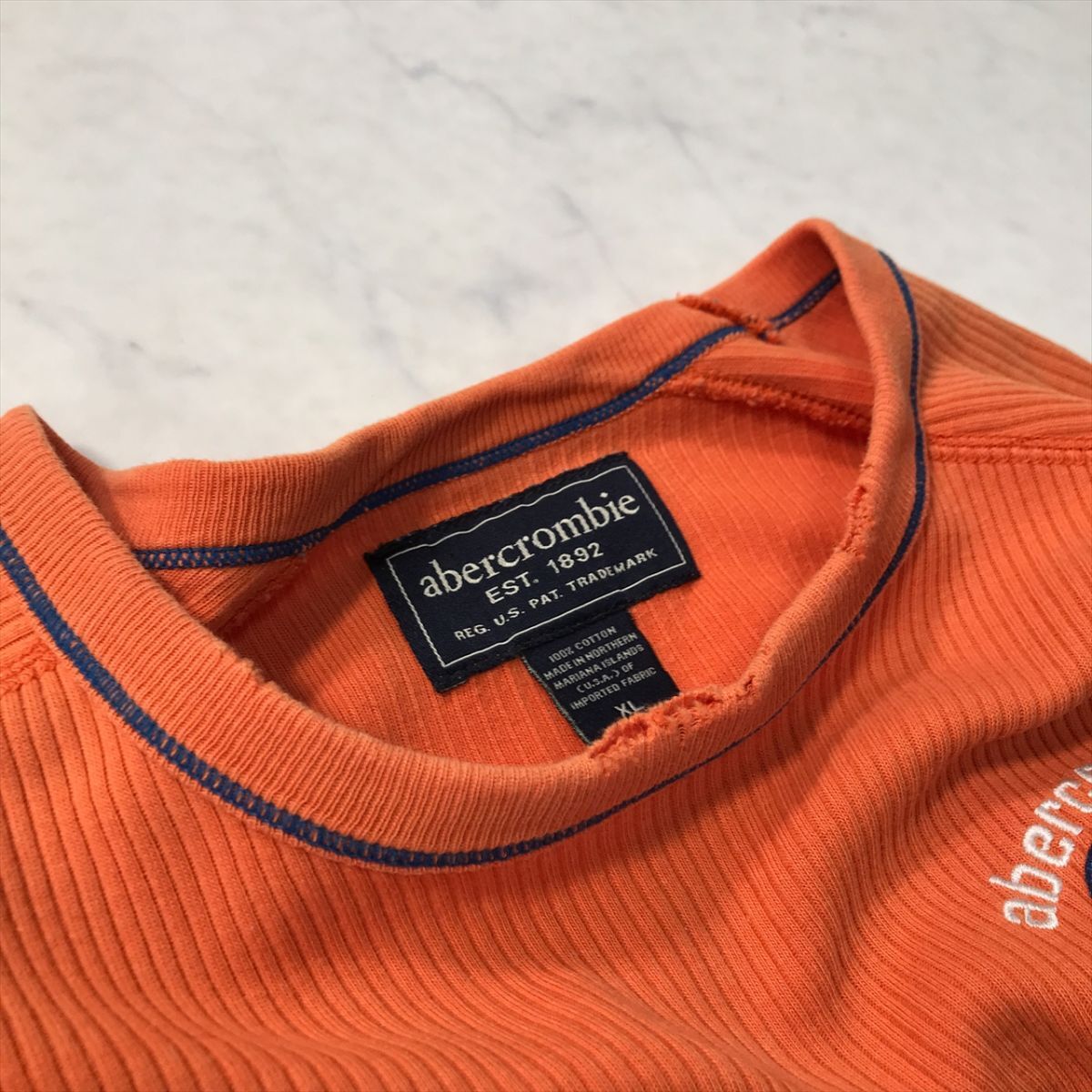 《オススメ◎》Abercrombie&Fitch アバクロンビー&フィッチ★ダメージ加工*長袖Tシャツ*カットソー*オレンジ*サイズXL(MA9429)◆S60