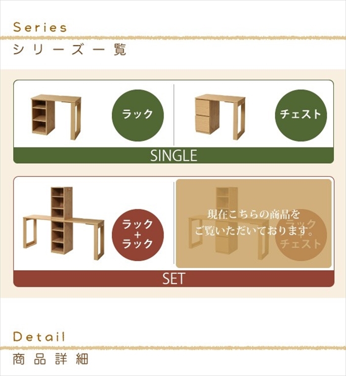 | [本体]プリント紙化粧合板 [天板]合成樹脂化粧合板(PVC) [引き出し前板]合成樹脂化粧パーティクルボード(PVC) |