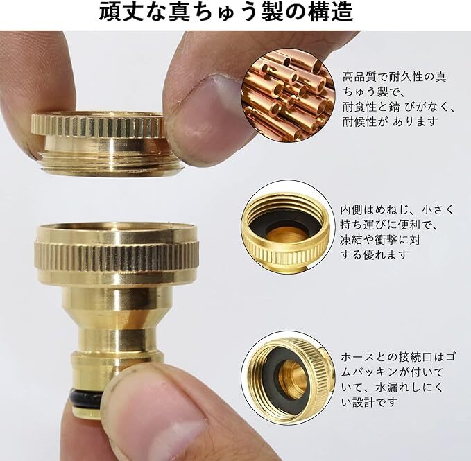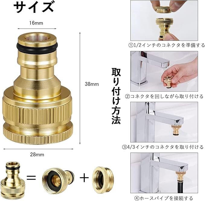 • 【上質な材質】:真鍮製で見た目もよく、直射日光や凍結にも強い作りになっています、は耐腐食性と防錆性があ。プラスチック製のホース継手に比べて寿命が長くなります。屋外での長期使用に適しています。※暖かいヒント:うまく接続できない場合は、タップにシーラントテープを巻いてから、もう一度接続してください。