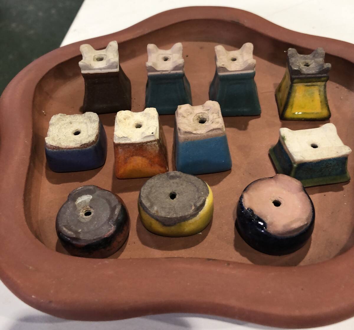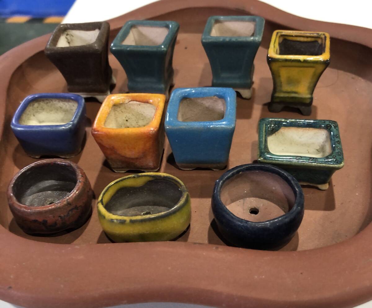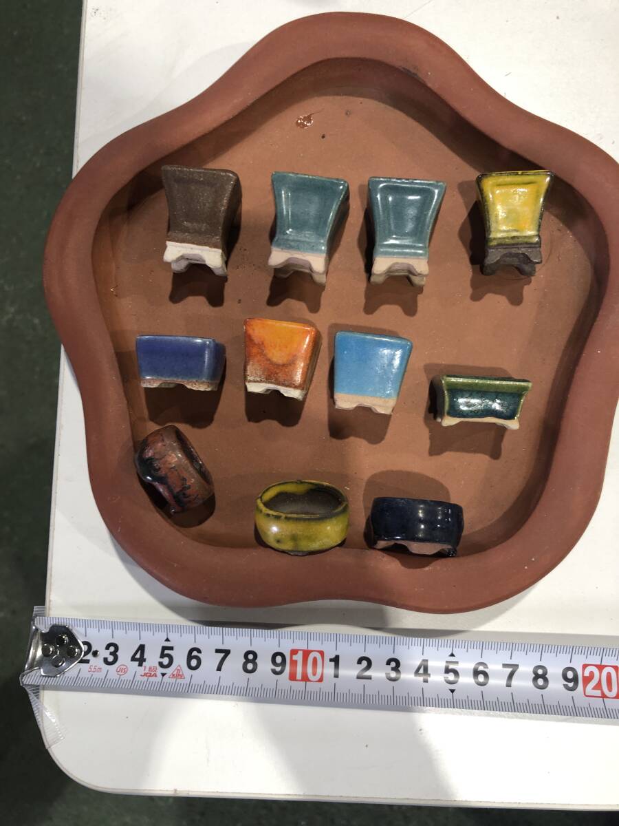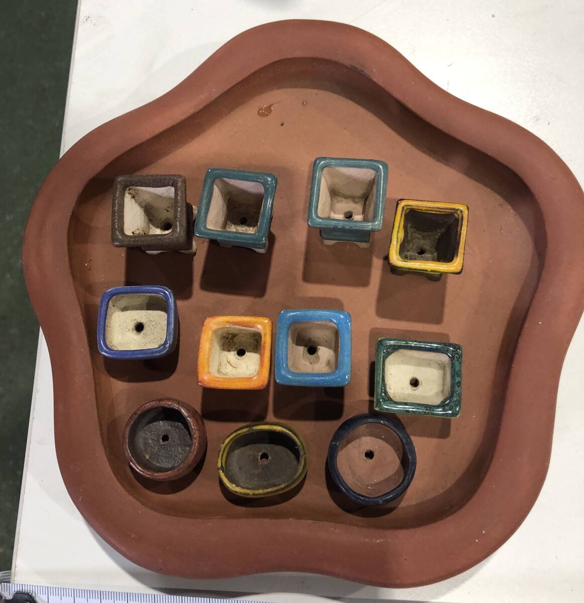 PI-53【中古・現状品】豆鉢、ミニ盆栽鉢 11個 大きな皿 1枚 計12個セット