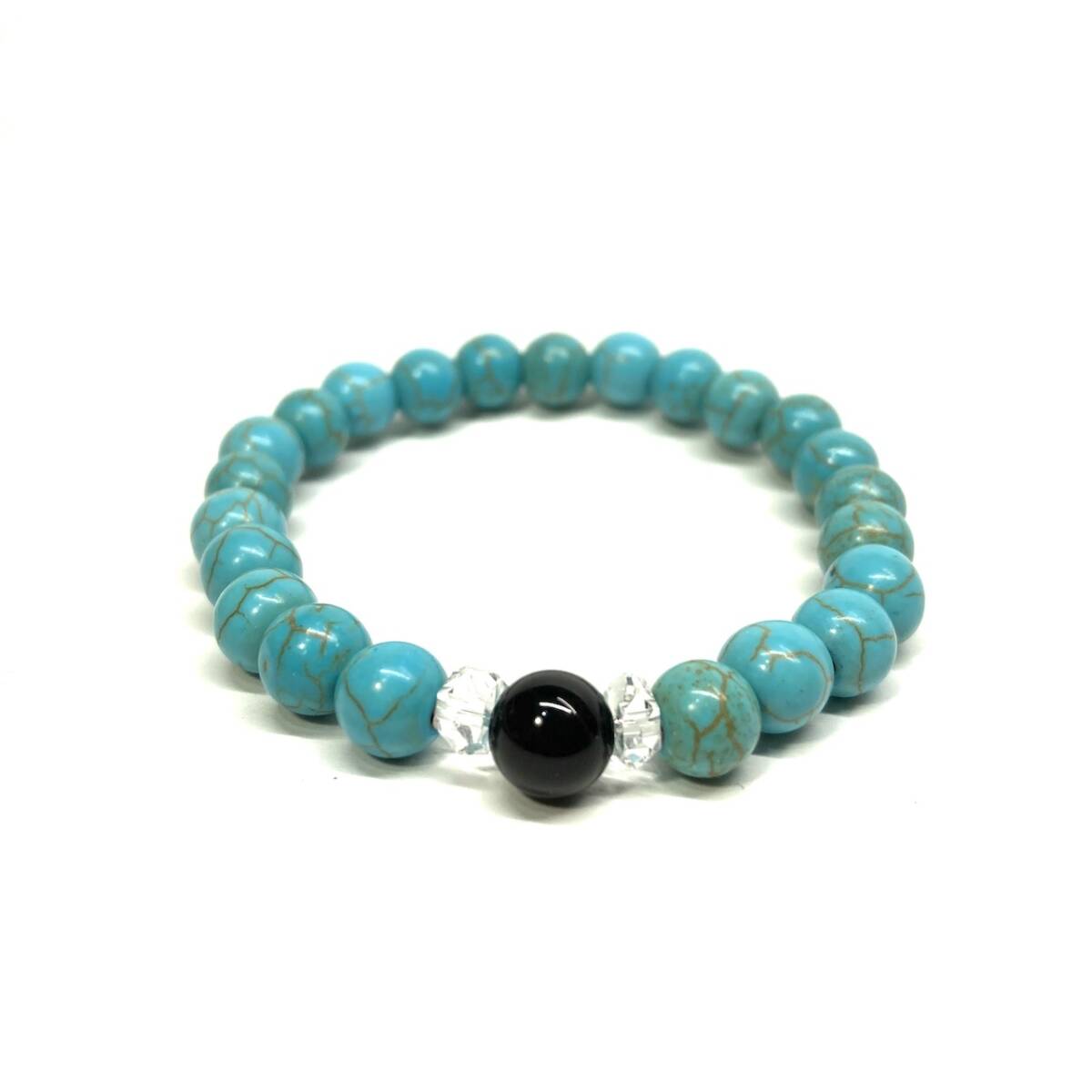 こちらは、モリオンとターコイズを組み合わせた一粒ブレスレットです。石大きさ8mm玉で基本サイズは内周15cmです。プレゼントしてもいいと思います。