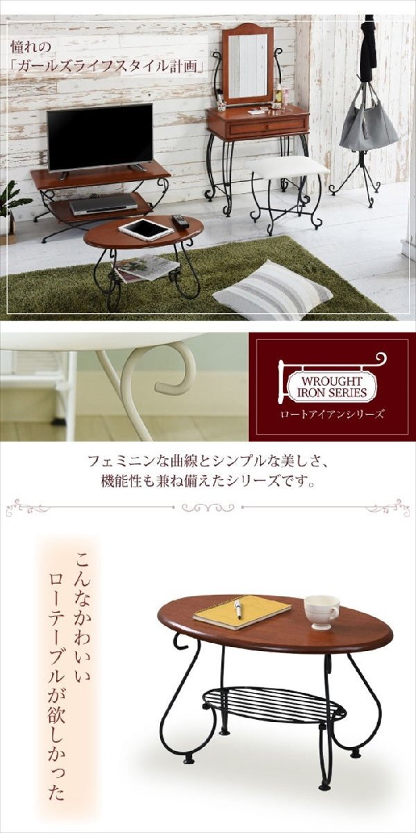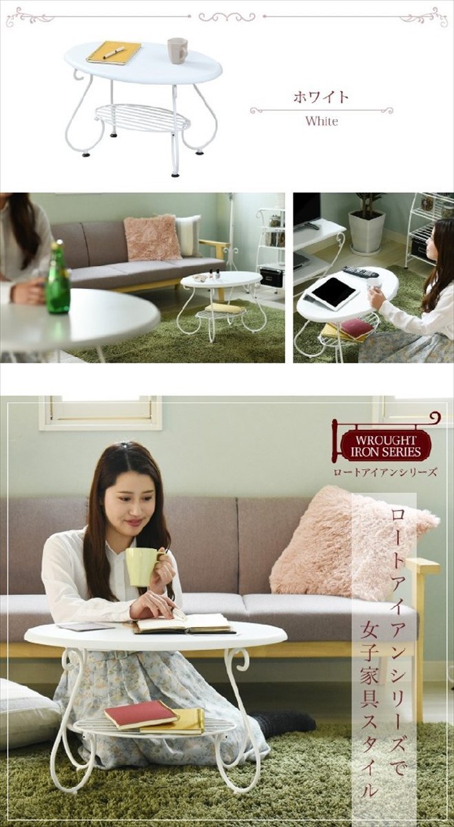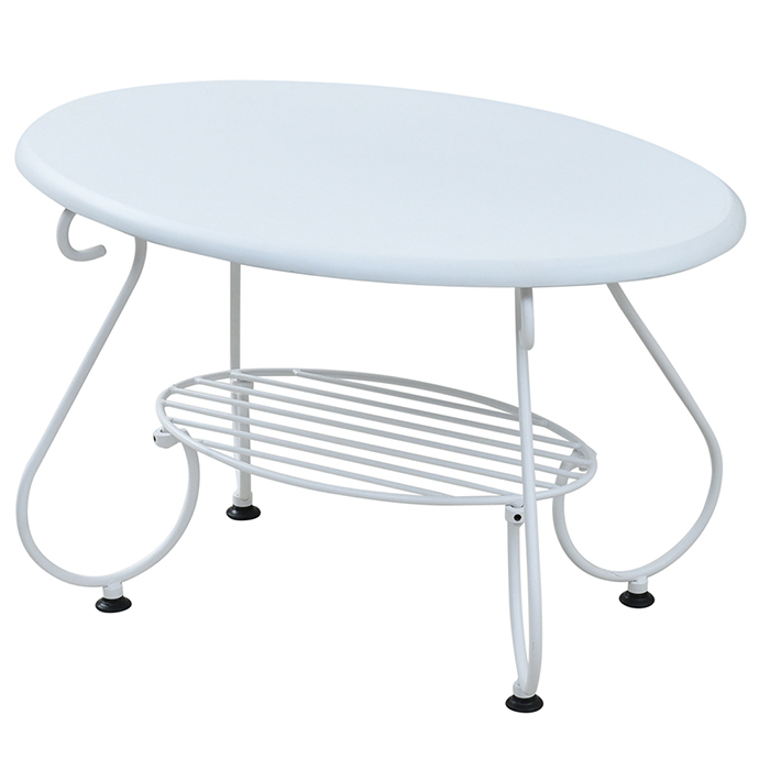 楕円の形がお洒落で可愛いリビングテーブル。 テーブルの下にはラックがついているので、雑誌やリモコンなどをサッと片づけることができます。 |