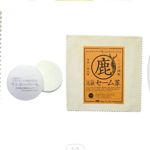 サンエーパール ブランド: 容量:28g + 高級セーム革 サイズ:商品情報150mm×150mm(1枚)1枚 研磨材の最強セットです。 メンテナンス可能な時計店には、必ずあるといっても過言ではない逸品でもあり プラスチック、アクリルガラス、強化プラスチックなどの小キズ消しに最適です。 バイクのシールド磨きにも大活躍。 ※大きな傷は消せません。 セーム革はメガネ、時計、貴金属、美術品などのあらゆる汚れを除去し拭き傷を付けません。 浄効果が長く持続し、革が汚れましたら洗濯して繰り返しお使いになれます。 天然の動物由来から加工するため、 厚み・色・キメ・表面質感などにも個体差がございます。 また革にケンカ・ケガなどにより付いたキズがある場合がありますが、 セーム革本来の性能の差は全くありません。 ※シリコン加工について キョン皮の繊維が極めて細いため拭き取り効果を発揮しますが、そのままだと吸い付くように密着してしまい使いにくくなるため密着しつつスムーズな拭き取りと可能にするものです。 発送は3営業日以内を予定しております。 お使いのモニターの発色具合によって、実際のものと色が異なる場合がございます。 ご了承くださいませ。