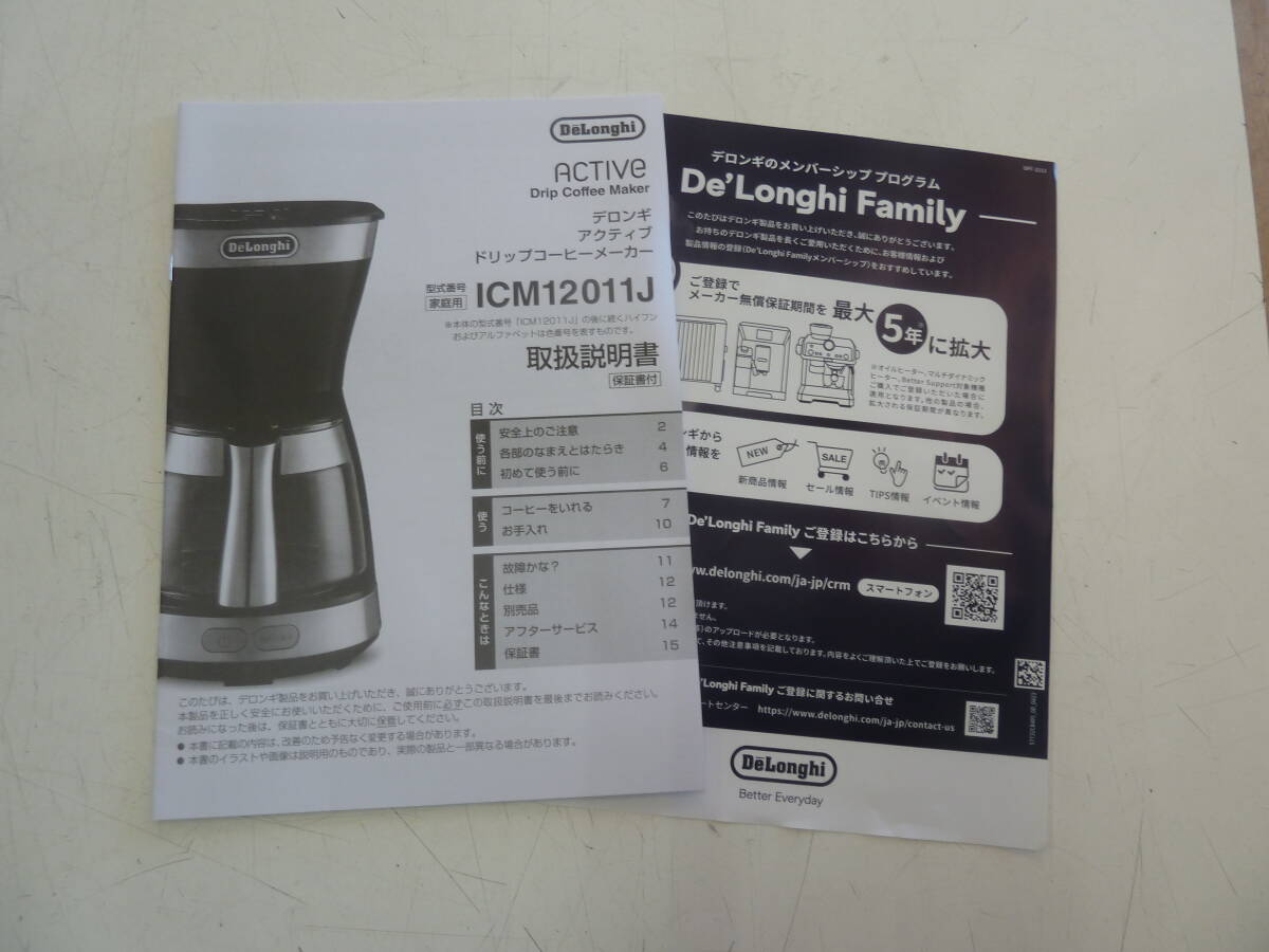 デロンギ アクティブドリップコーヒーメーカー ICM12011J-BK を出品します。