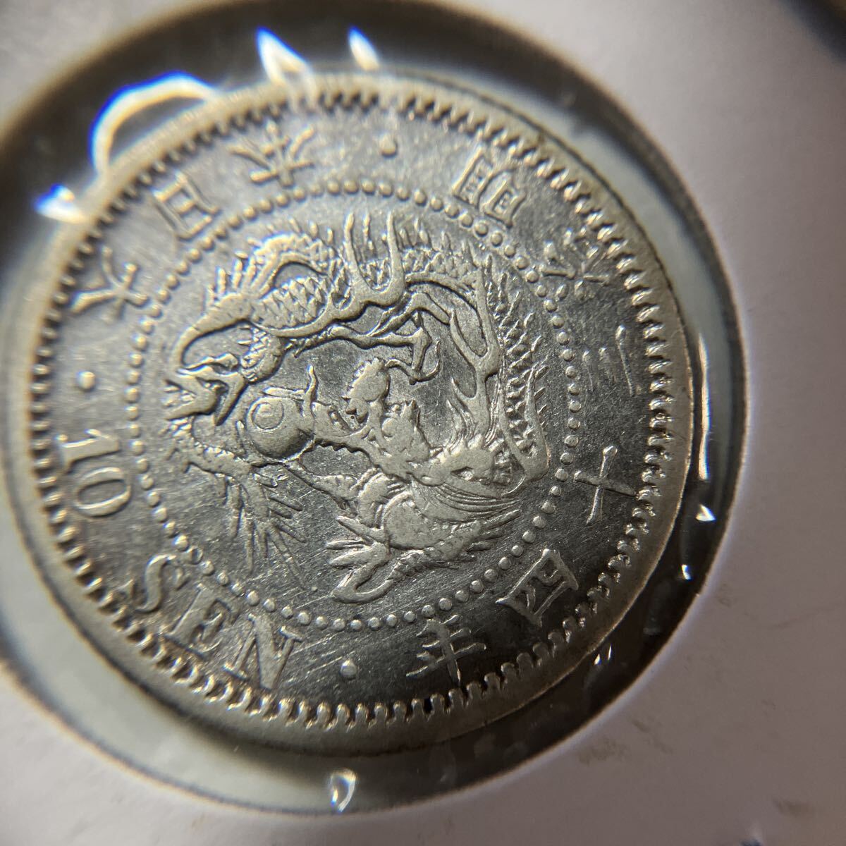 近代貨幣! 竜10銭 明治34年 ホルダー入り 十銭 古銭 貨幣 銀貨 アンティーク 美品★6