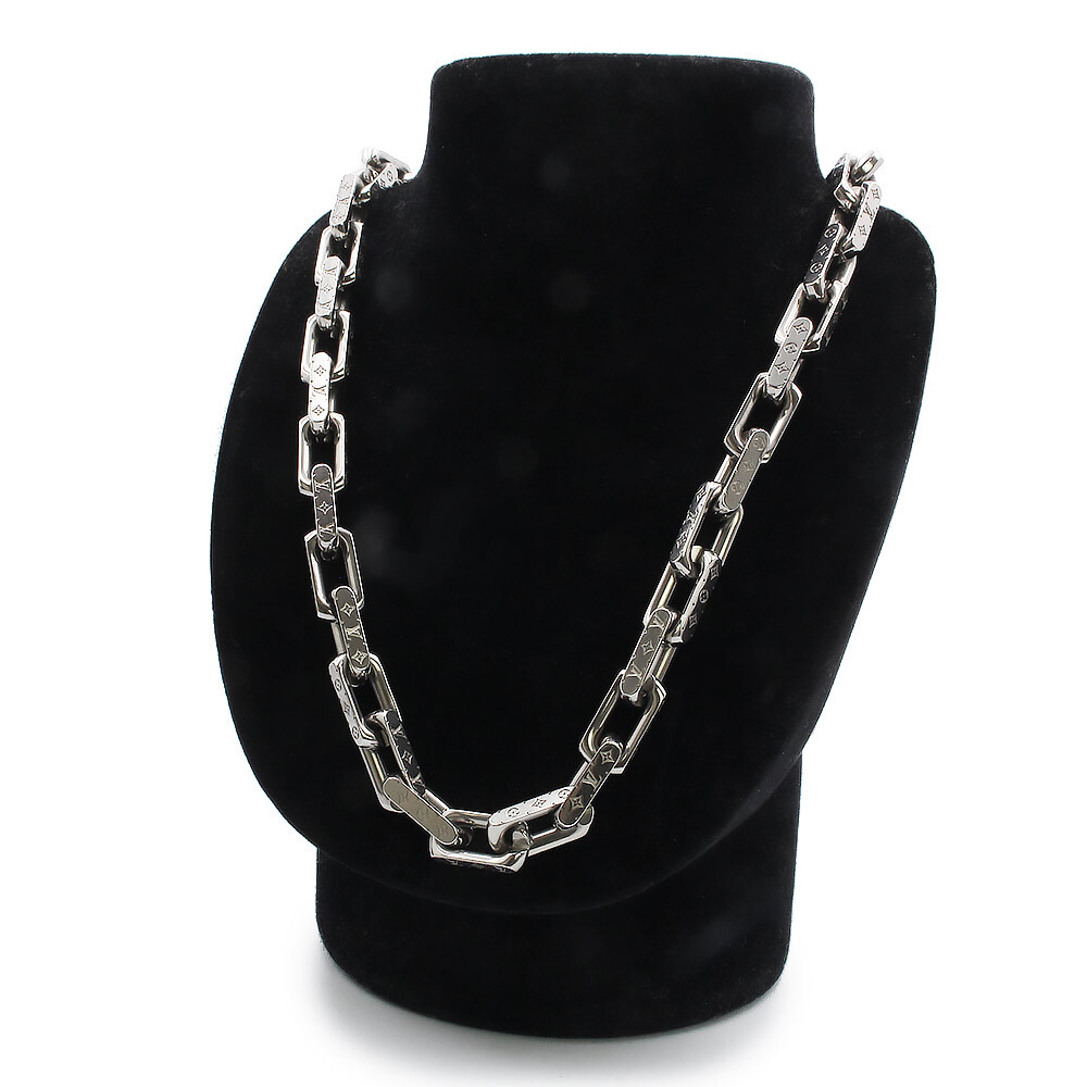 (中古)ルイ ヴィトン LOUIS VUITTON チェーン モノグラム ネックレス シルバー M00307