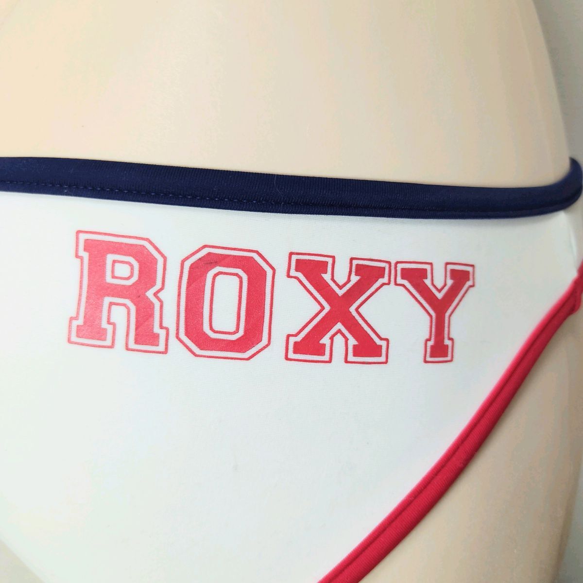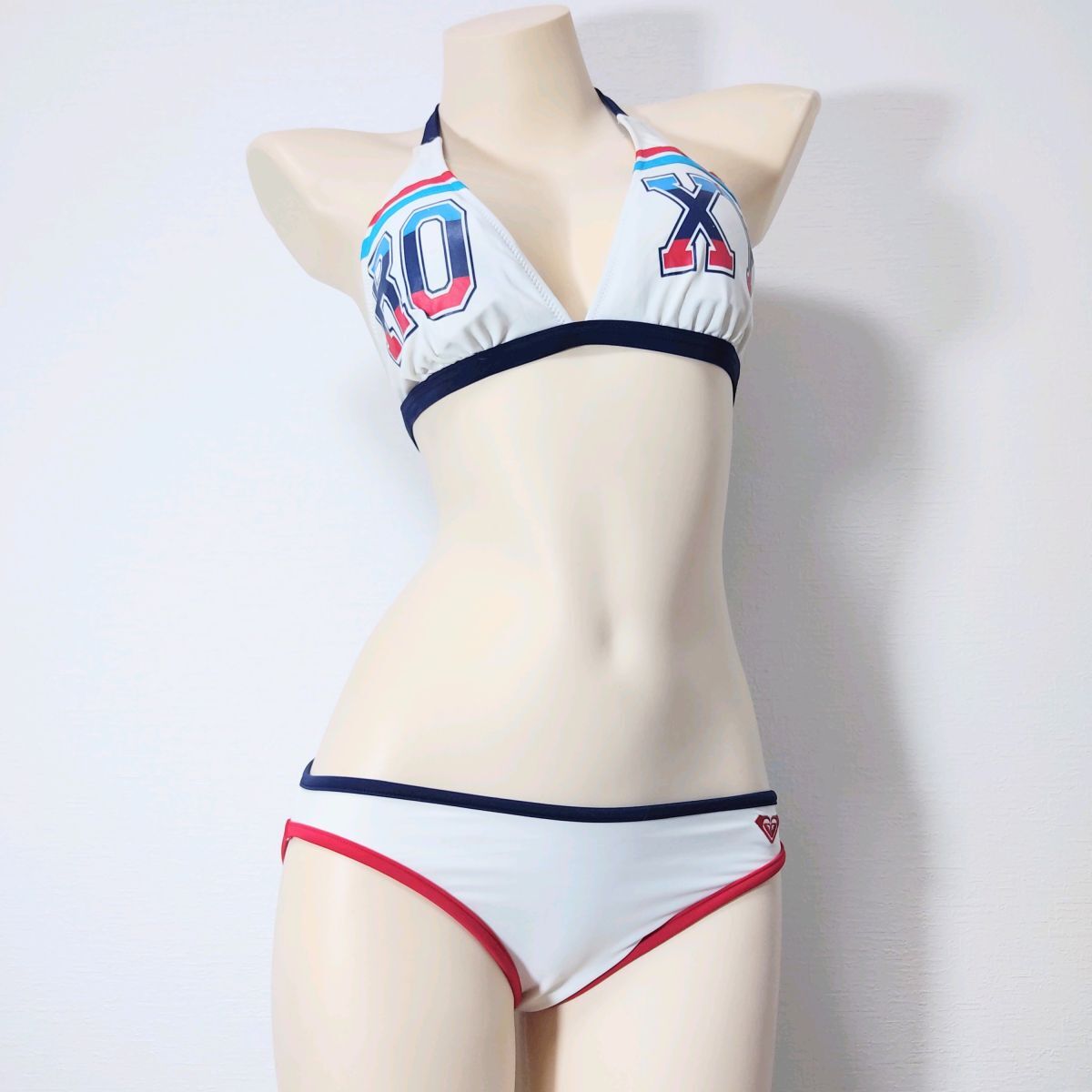 93*ROXY女子水着(L)★ビキニ光沢ホワイト白ネイビー濃紺レッド赤トリコロール★伸縮性あり大きいサイズ男性も