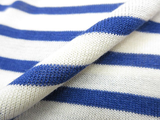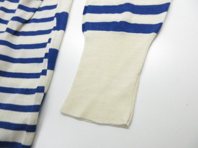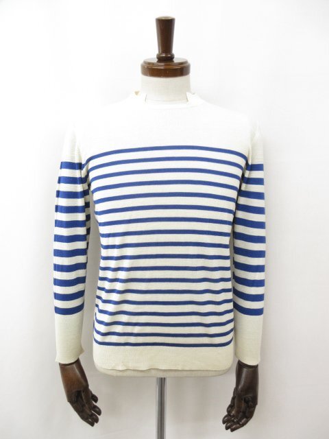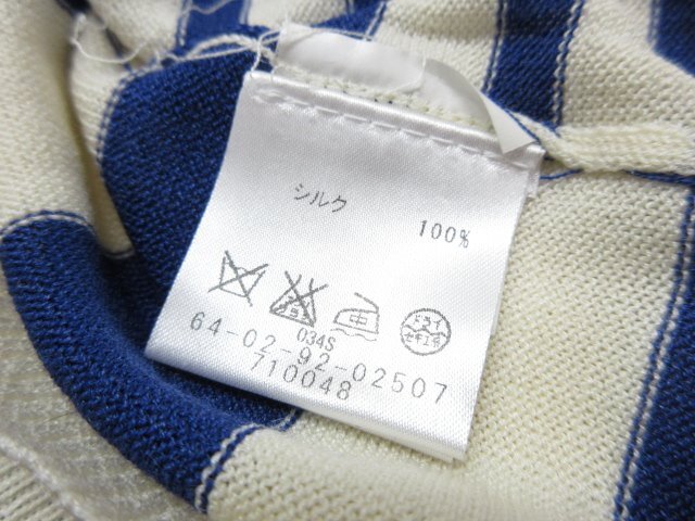 極美品【SIGI シギ】64-02-92-02507 シルク100% ボーダー柄 ハイゲージ 長袖ニット (メンズ) sizeS アイボリー×ブルー系 ◇35MN6151◇