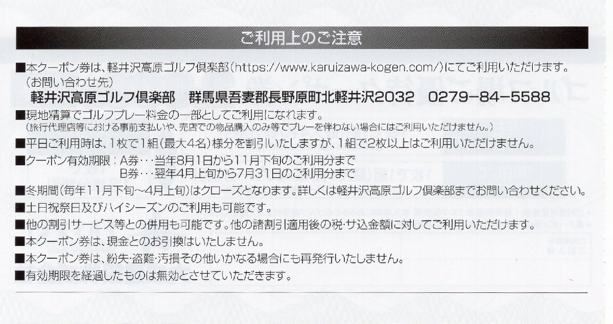 T.軽井沢高原ゴルフ倶楽部 2000円割引券(最大4名まで) ゴルフ場 優待クーポン券(A券) 大成建設株主優待券 1-2枚 2025/8/1-2025/11月下旬期