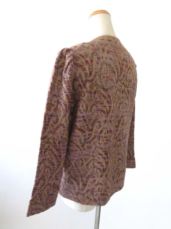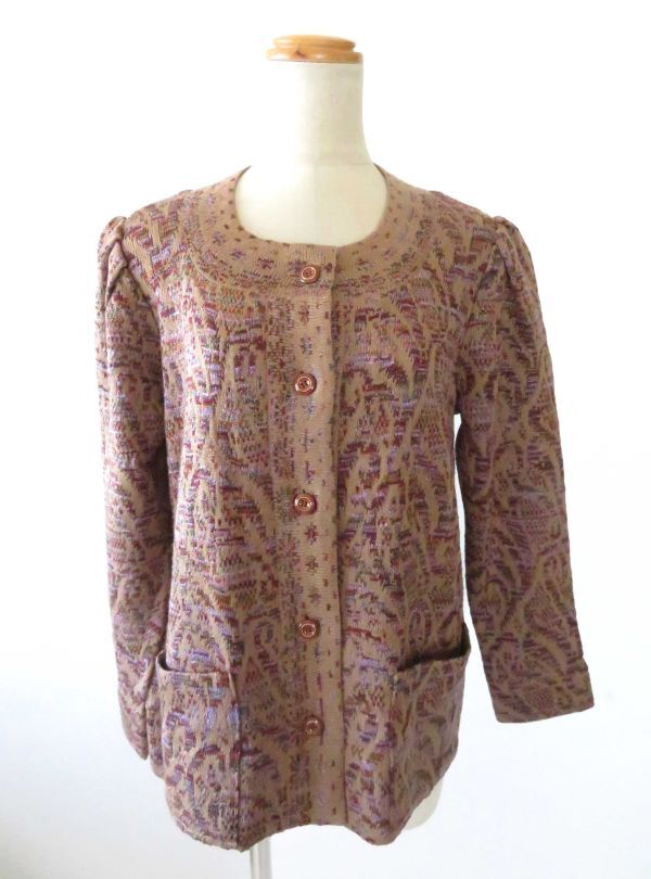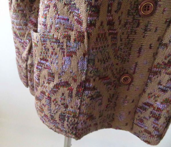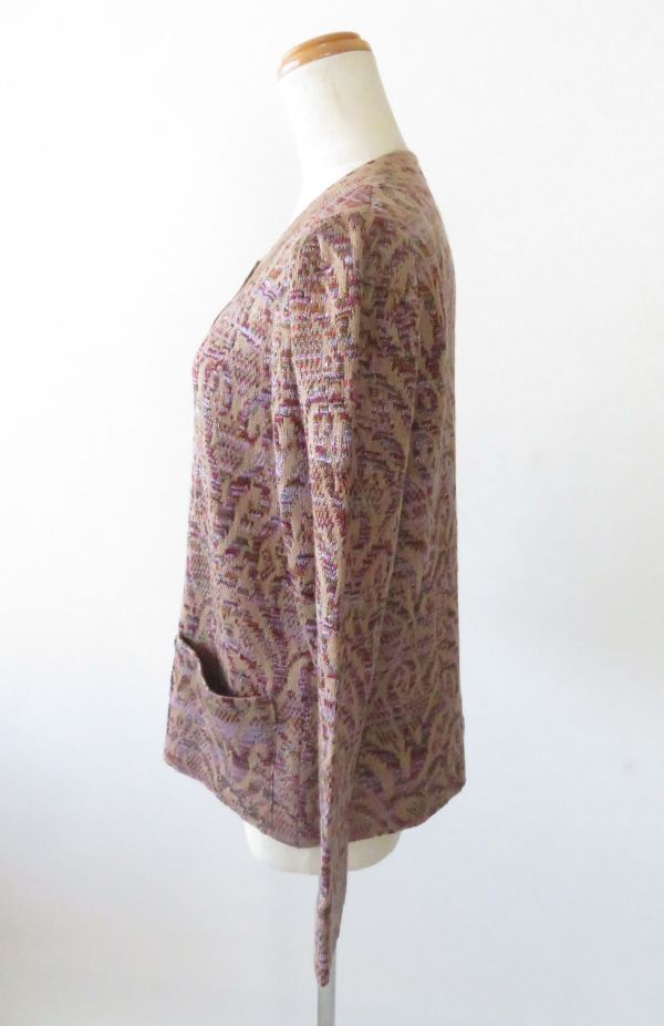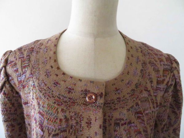 詳細 | 中手の機械編み伸縮地です。気持ちのいい肌触りの上質感のさらりとした美しい模様編みニットです。細かくこだわった色合いの編み柄でボックスラインをゆったり綺麗目に着心地のいいデザインで丁寧に仕上げてあるカーディガンです 。 状態は綺麗なものです。 |