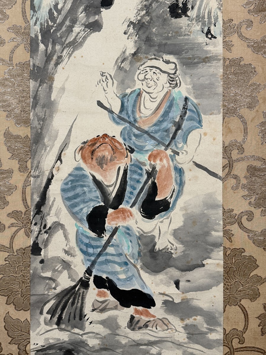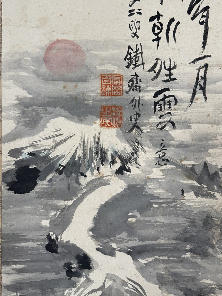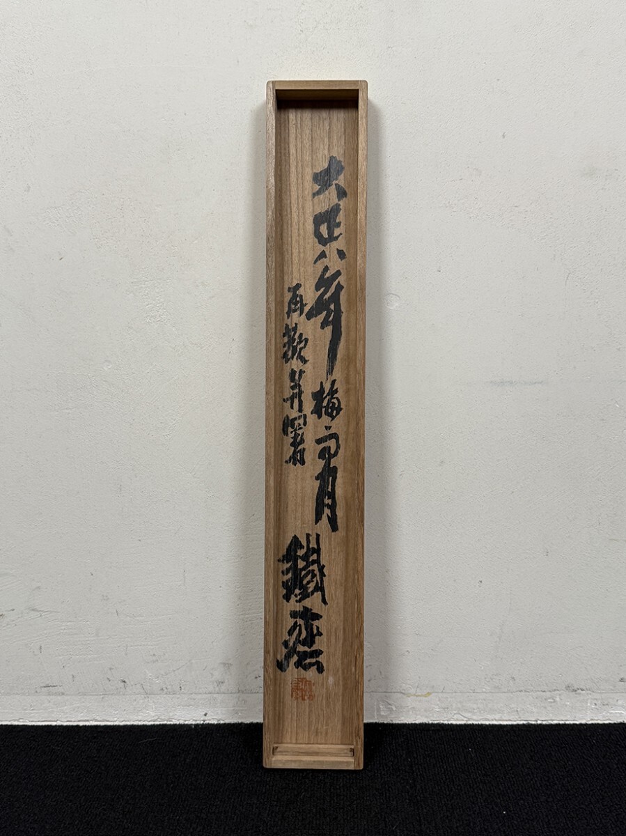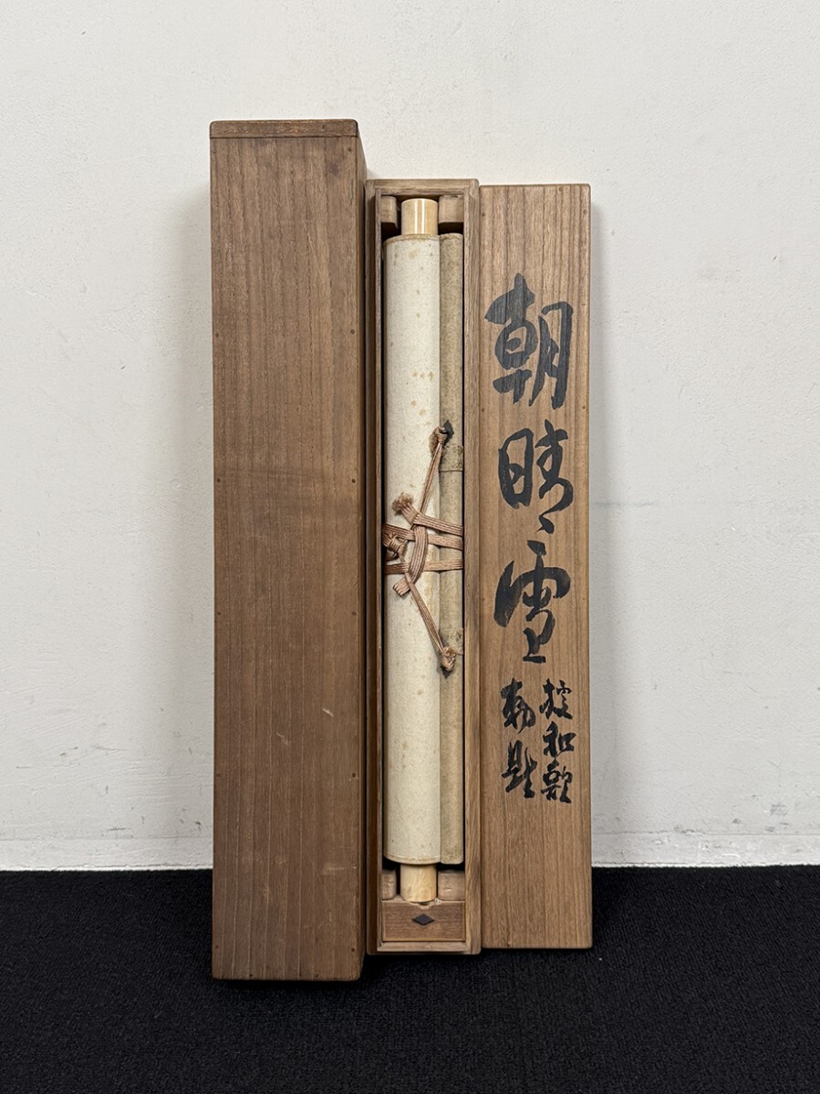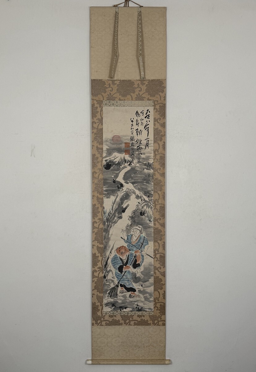 総丈サイズ…横 43 × 縦 206.5 cm 紙本着色・共箱 二重箱入 大正8年(1919)84歳 状態…シミ 本紙微少オレ 箱微少傷ミ 【印刷ではありません】 【真作】 富岡鉄斎 幕末~大正の文人画家。京都生。名は猷輔のち百錬、別号に鉄崖・鉄史等。幼少より国学・漢学・詩文等勉学に励み、維新後には奈良石上神宮等の宮司を務める。田能村直入らと日本南画協会を設立、日本各地を旅しながら、深い学識に基づいた自由な作画活動を行った。帝室技芸員・帝国美術院会員。大正13年(1924)歿、89歳。 |