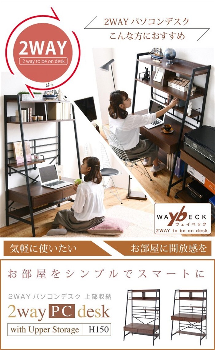 | ハイ・ローの2wayで使用できるフレキシブルなデスクの90幅上部収納棚付きのタイプ。 棚はひっかけるだけなので、左右はフリーにレイアウトできます。 本体にはメラミン樹脂シートを採用しているので、耐熱性・耐水性・耐傷性に優れています。 木目とスチールの組み合わせがスタイリッシュなデスクです。 |
