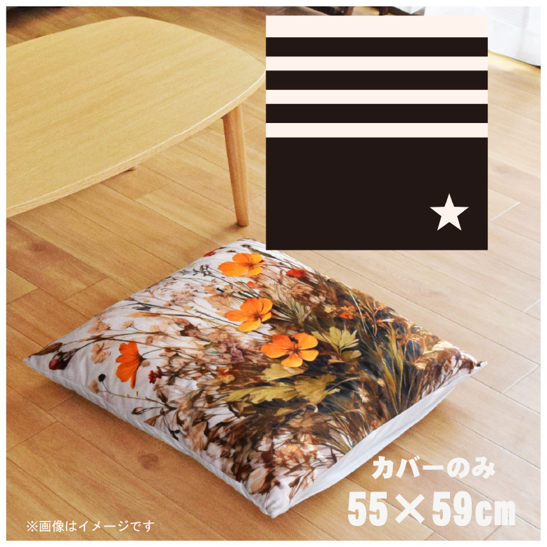 座布団カバー 約55×59cm カバーのみ 単品 洗える ファスナー付 イラスト 転写プリント 星ネイビー CSC-B088 アメリカン2ブラック