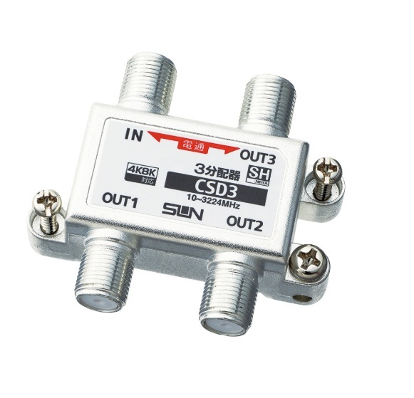 送料無料 サン電子 4K8K衛星放送対応 3分配器 1端子電通過型