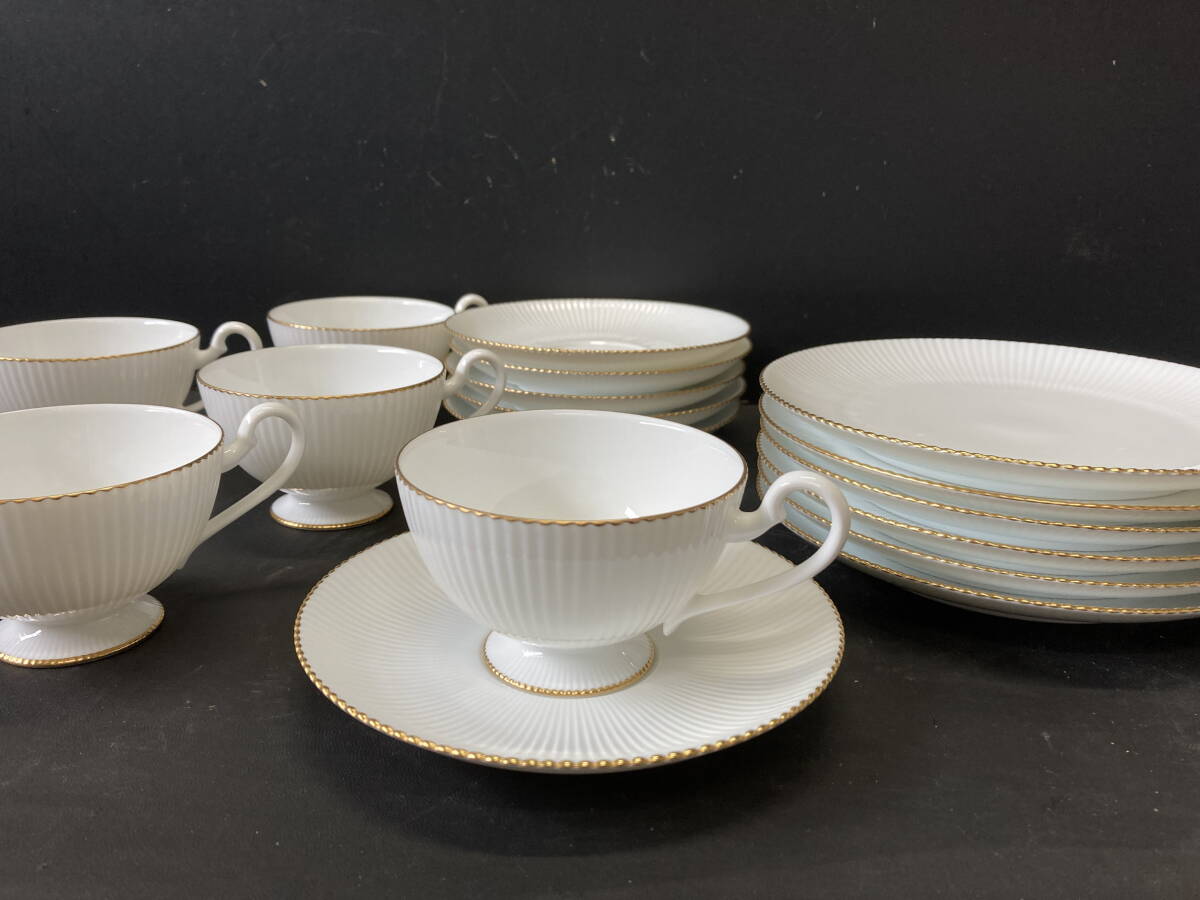 10-M37/2-80 Noritake ノリタケ ダイヤモンドコレクション カップ 5客 ソーサー 6枚 プレート 6枚 計17点 セット 金彩 白磁 C&S | |||