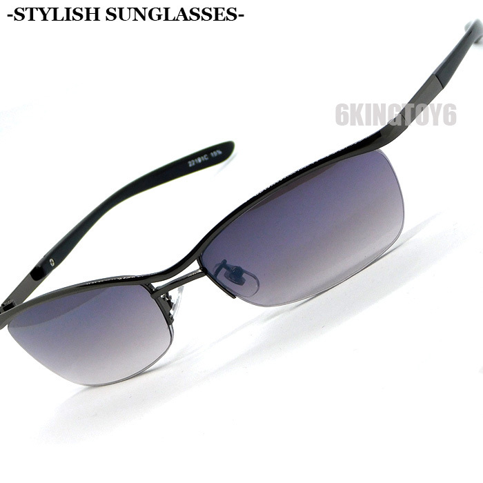 送料無料 オラオラ系 サングラス メンズ UVカット メタル ナイロール ハーフリム 伊達メガネ 伊達眼鏡 シャープ スモークハーフミラー★