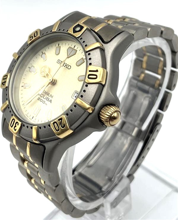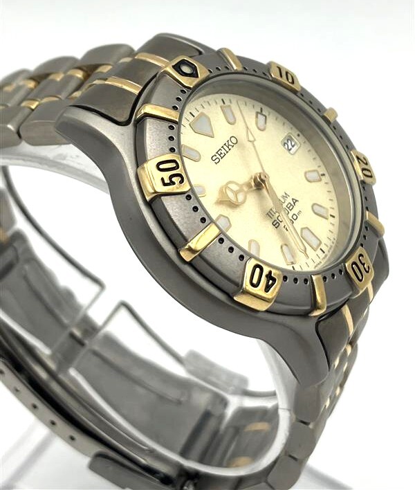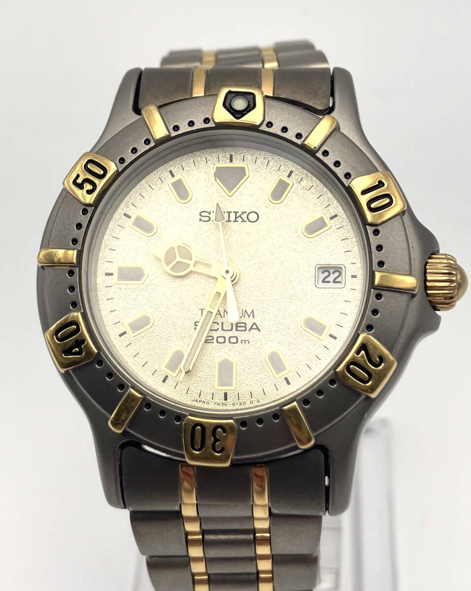 | #20124 SEIKO セイコー スキューバ QZ チタン製 グレー 7N35-6100 クォーツ ダイバーウォッチ メンズ 腕時計 稼働品 | ||