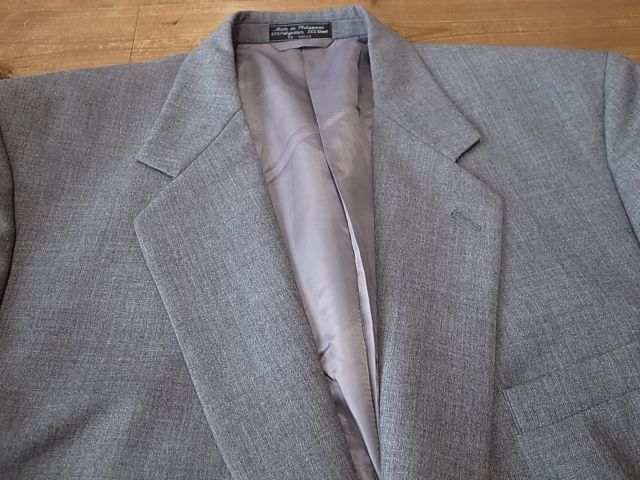 ◆ブランド 「HARDY AMIES」 アメリカ古着 ●サイズ表記 48R 実寸サイズ 4XL(5L)相当 肩幅…52cm(肩先から肩先の間の長さ) 身幅…63cm(両脇を横直線に結んだ長さ) 着丈…80cm(後衿ぐり中央から後身頃裾) 袖丈…66cm(袖付けの肩先から袖先) ※平置き状態での素人採寸ですので、多少の誤差はご了承ください。 ●素材…65%POLYESTER 35%WOOL オールシーズン対応 ●色…グレー ●ポケット… フラップポケット ●裏地…総裏仕立て ●ベント…センターベント ●製造国表記…フィリピン ●状態…使用感は少ない美品です。 ★送料 全国一律 700円 佐川急便 (北海道900円 沖縄その他離島1700円) ※複数ご購入の場合、同梱発送可能です。 |