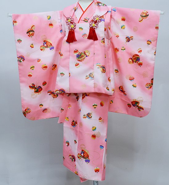 サイズ | ■着物 ・被布丈約48cm ・裄丈約40cm(3.5cmの上げ、7cmのばすことが可能) ・袖丈約57cm ・着物丈約93cm ■草履18cm(フリーサイズ) 適合身長83cm~105cm ※着丈=背中首のゴリゴリ部分から、足くるぶしまでの長さ ※裄丈=腕を斜め45度下げた状態で、背中首ゴリゴリ部分から、肩上を通して、手くるぶしまでの長さ ※身長87cm~96cmであれば特に直さずともこのままでご着用いただけるかと思います ※はじめから肩上げがとられているので解いて数センチ伸ばす(丈出し)ことも可能です。 ※腰上げはとられていないため腰ひもで着付け補正をいただければと思います。 |