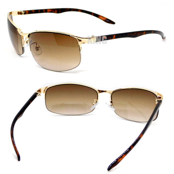 送料無料 オラオラ系 チョイワル系 ハーフリム型 サングラス メンズ UVカット ブロー 伊達メガネ ドライブ 運転 強面 ブラウンレンズ新品★