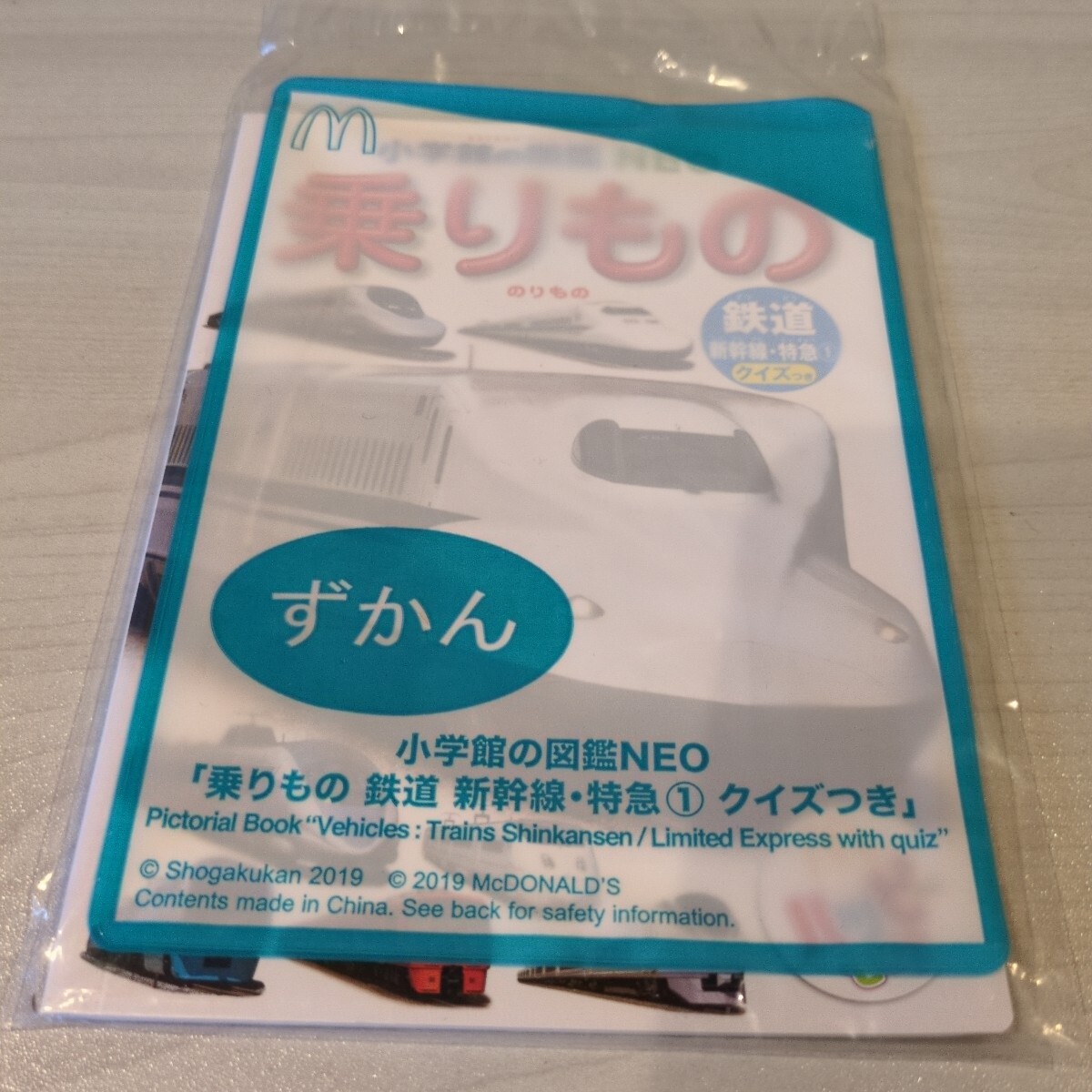 マクドナルド ハッピーセット 小学館の図鑑NEO「乗りもの 鉄道 新幹線特急① クイズつき」 です。