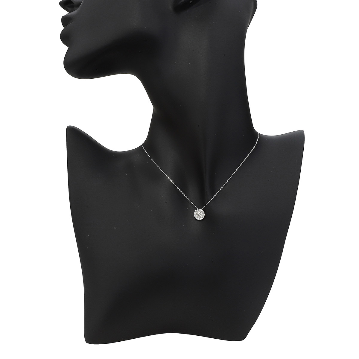 キラキラと虹色の光彩を放つ上質ダイヤモンドの輝きをぎっしりとセッティングされたペンダント。眩い煌めきが、装いの胸元を上品に飾ってくれます。