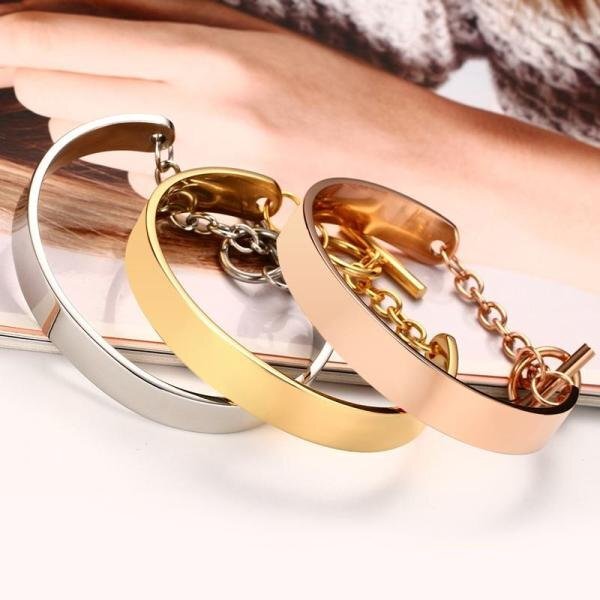 ブレスレット バングル シャイニー ステンレス フリーサイズ レディース シルバーピンクゴールドカラー IDブレスレット アジャスタブル ジュエリー 輝き