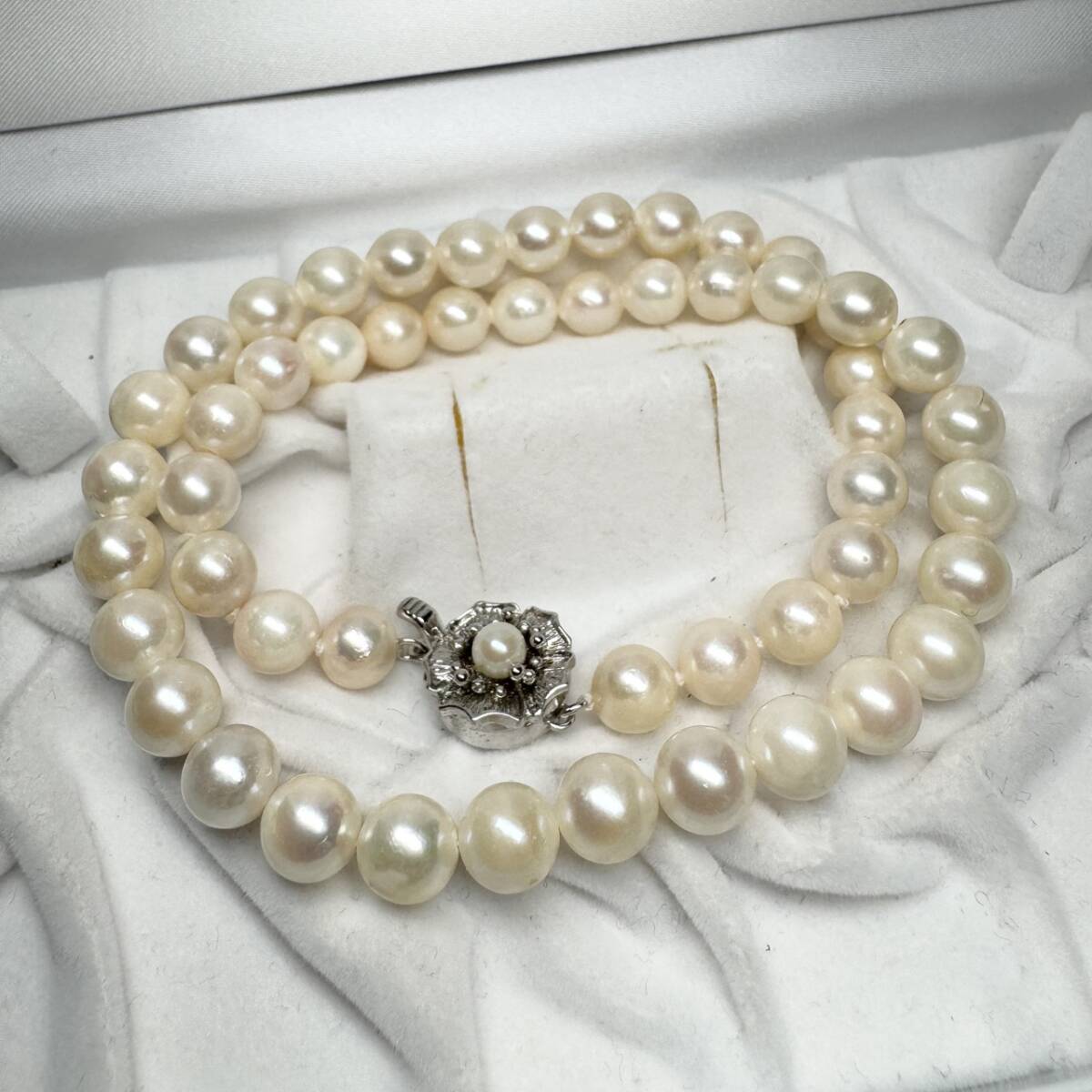 【テリ強】 7.5-8.0mm アコヤ 本真珠ネックレス SILVER留め具 42.0cm 36.9g クリーム系 パール あこや ジュエリー 宝石 1SEND