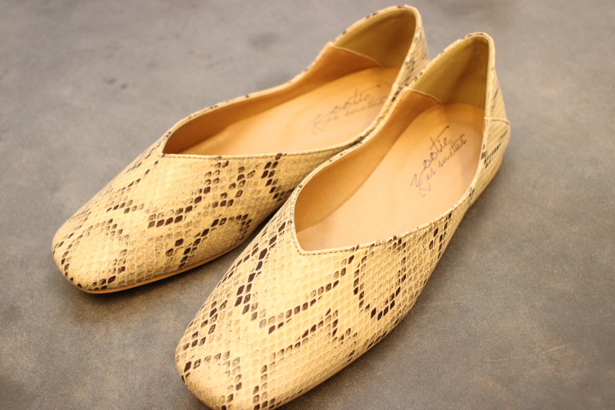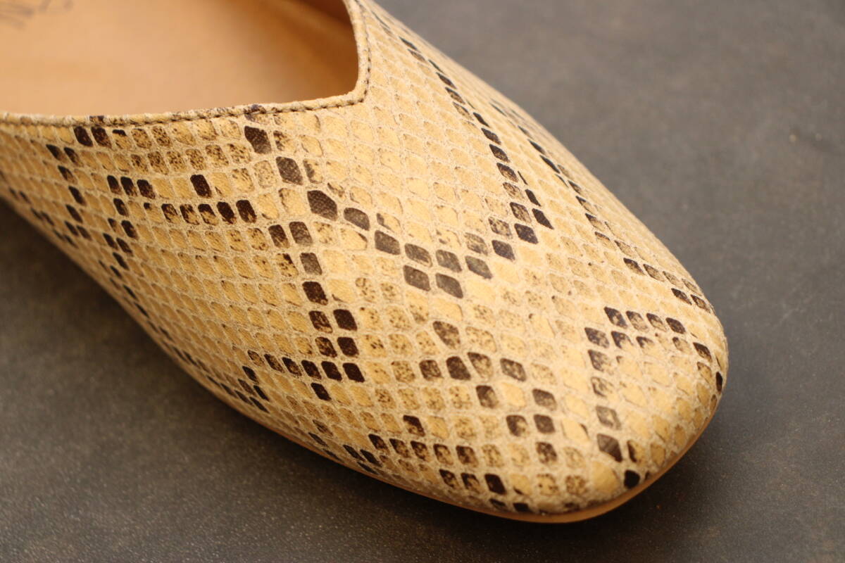 新品 スクエアトゥ Vカットバブーシュ パイソン Sサイズ 127