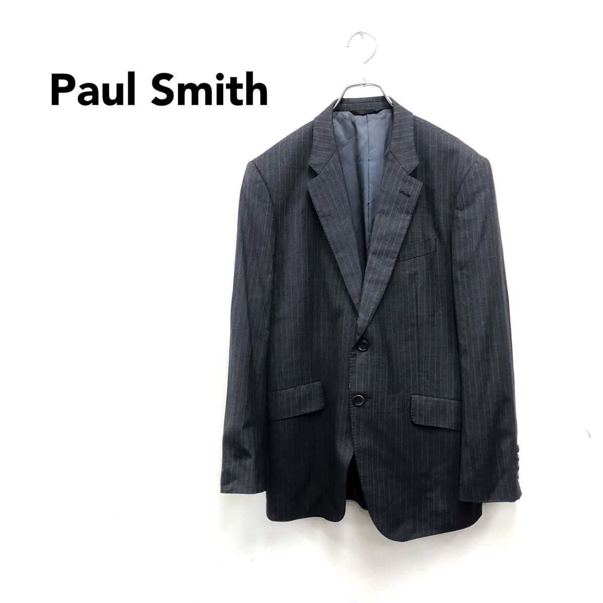 2O1283-Y-N◆Paul Smith ポールスミス シングルスーツジャケット ストライプ 総裏 ノッチドラペル サイドベンツ 紳士◆sizeMX グレー 毛